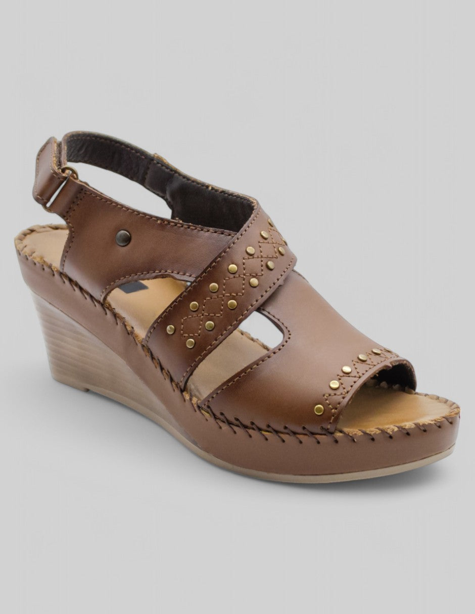 Sandalia con Tacón Exterior Piel Color Café Para Mujer De Lobo Solo