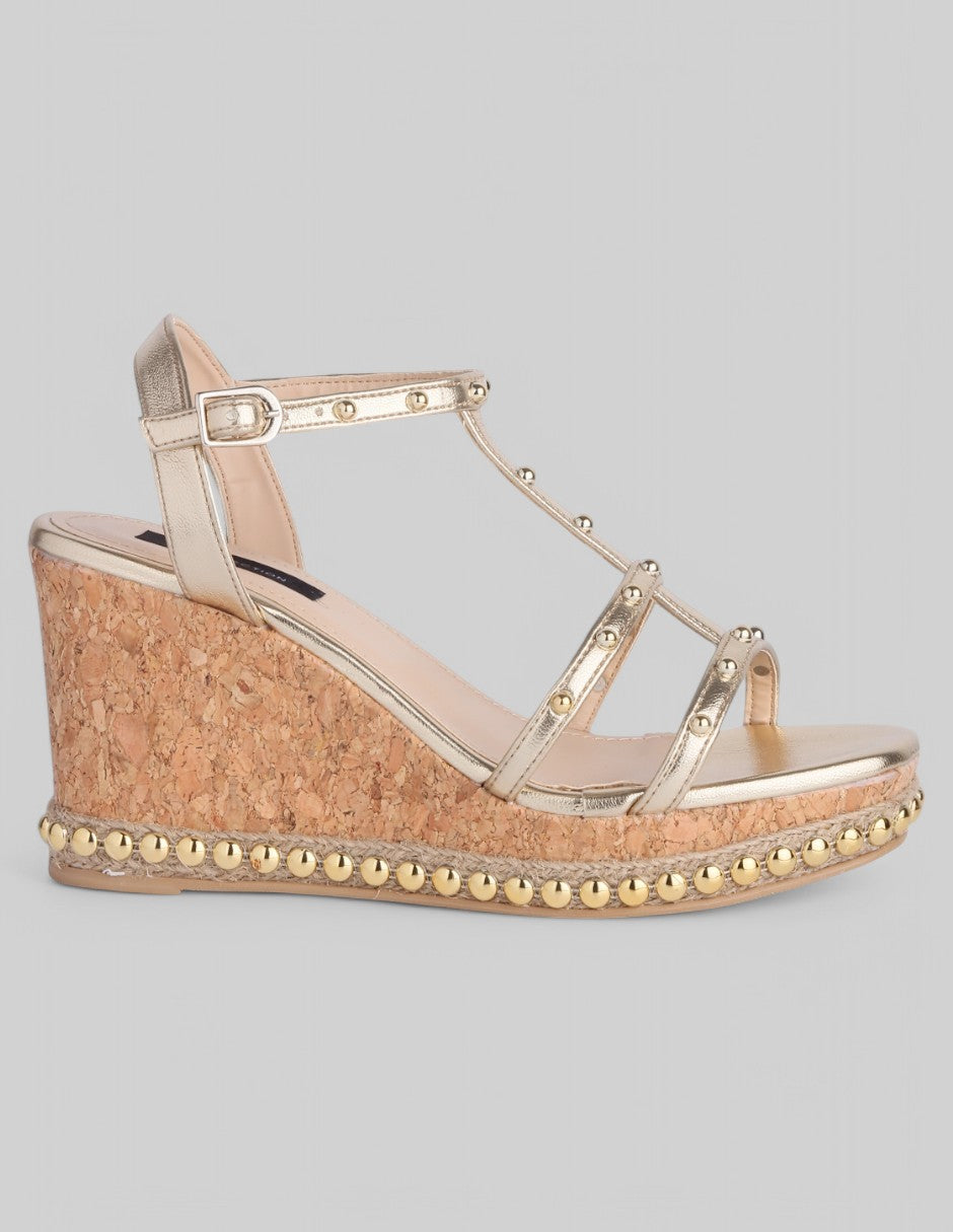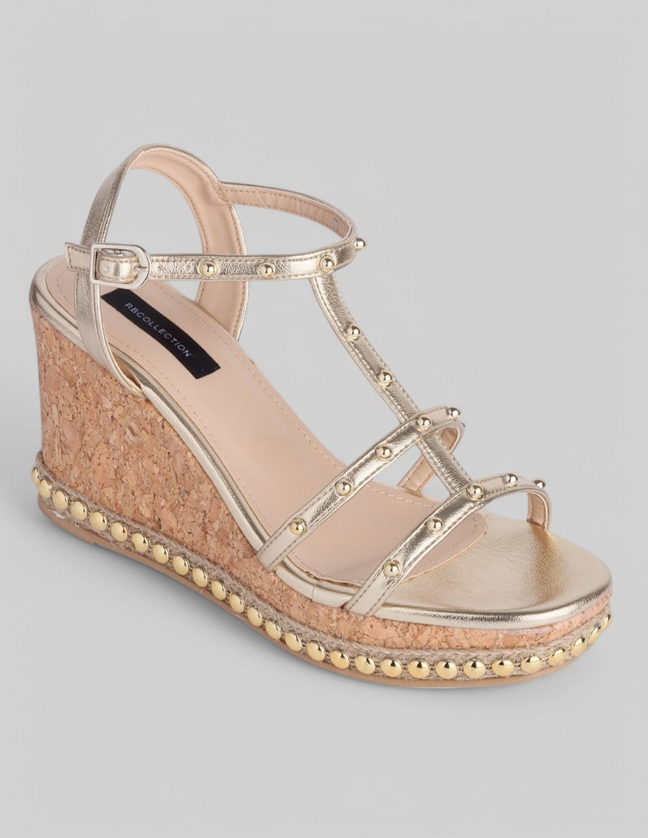 Sandalia con tacón Exterior Sintético Color Dorado Para Mujer De RBCOLLECTION