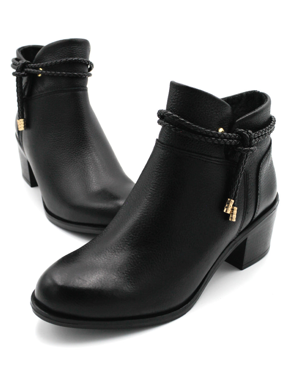 El botín con tacón modelo Doro de RBCOLLECTION en piel color negro es la opción ideal para quienes buscan un equilibrio entre estilo y comodidad. Su diseño contemporáneo incluye un detalle de hebilla que añade un toque distintivo, mientras que la parte superior suave proporciona un ajuste cómodo. La punta redondeada y el tacón ancho aseguran estabilidad, perfectos para el uso diario. Este botín es fácil de combinar con una variedad de atuendos, desde jeans hasta vestidos, convirtiéndose en un imprescindible en tu guardarropa. Fabricado con materiales de alta calidad, ofrece durabilidad y un estilo cómodo.