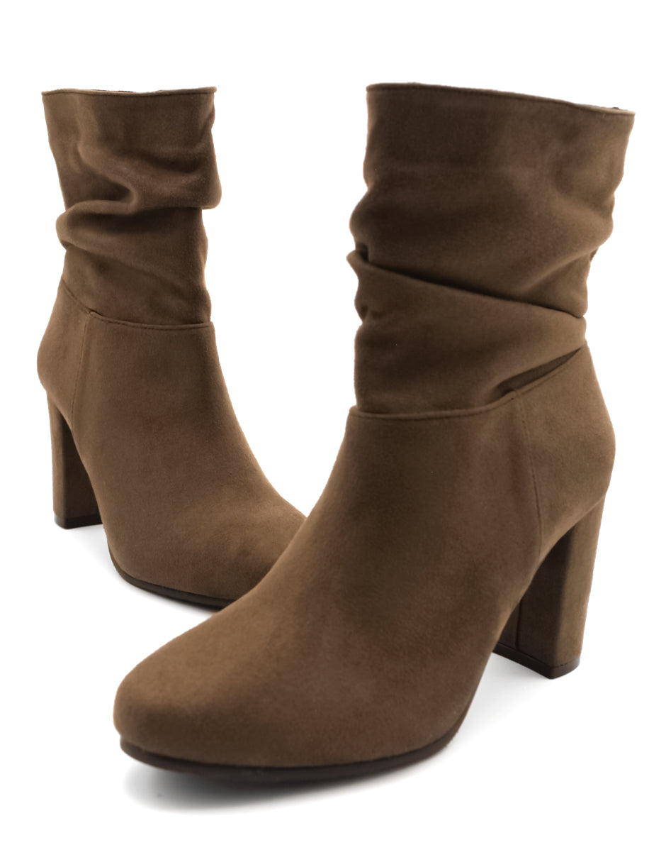 Botín con tacón Exterior Gamuza Color Café Para Mujer De RBCOLLECTION