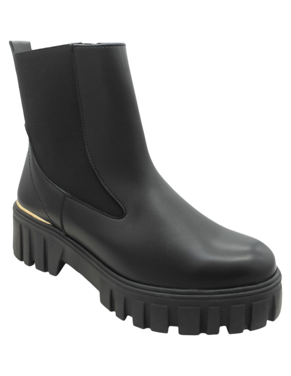 Las botas casuales modelo Dune de RBCOLLECTION en piel vegana color negro son la opción ideal para quienes buscan estilo y comodidad. Su diseño moderno presenta una parte superior de piel vegana suave que proporciona un ajuste cómodo, mientras que la suela gruesa garantiza excelente tracción y estabilidad. Con un elegante detalle dorado en el talón, estas botas añaden un toque de sofisticación a cualquier atuendo. La facilidad del calzado, gracias a sus paneles elásticos, las convierte en un accesorio versátil para el uso diario. Perfectas para combinar con jeans, faldas o vestidos, son un elemento esencial en tu guardarropa.