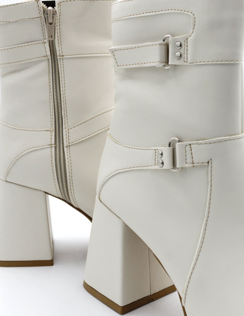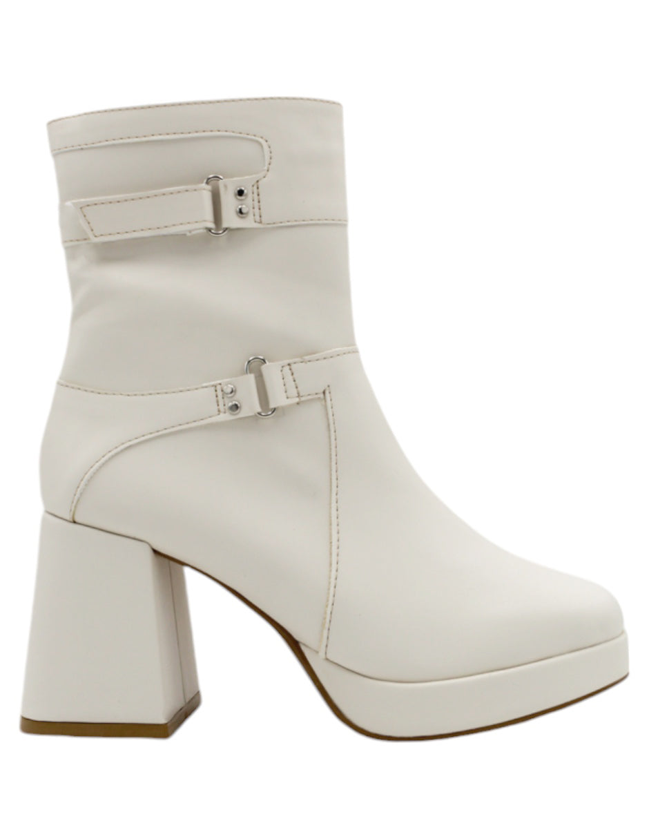 Botín con tacón Exterior Piel vegana Color Blanco Para Mujer De RBCOLLECTION