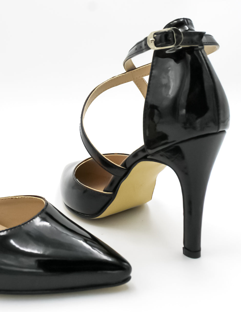 Las zapatillas modelo Aura de RBCOLLECTION en charol negro son una opción perfecta para lucir con estilo y elegancia en cualquier ocasión especial. Con un diseño de tiras cruzadas que abrazan delicadamente el tobillo y una hebilla ajustable, estas zapatillas proporcionan un ajuste seguro y cómodo. La punta estilizada añade un toque sofisticado, mientras que el acabado brillante en charol destaca por su atractivo. El tacón alto es ideal para alargar la figura sin comprometer la comodidad. Perfectas para eventos formales, estas zapatillas son el complemento perfecto para destacar tu look.