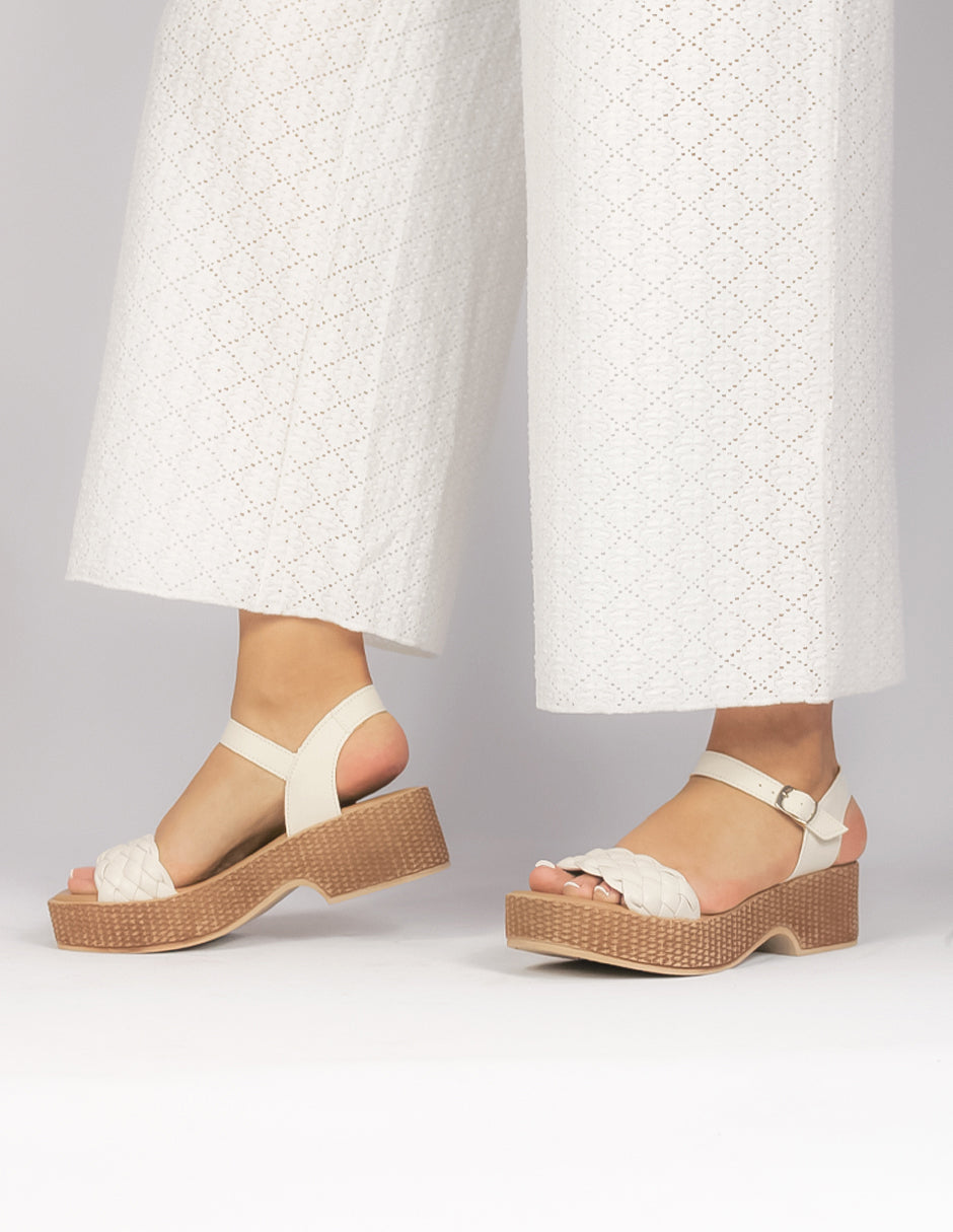 Sandalia con tacón Exterior Sintético Color Blanco Para Mujer De RBCOLLECTION