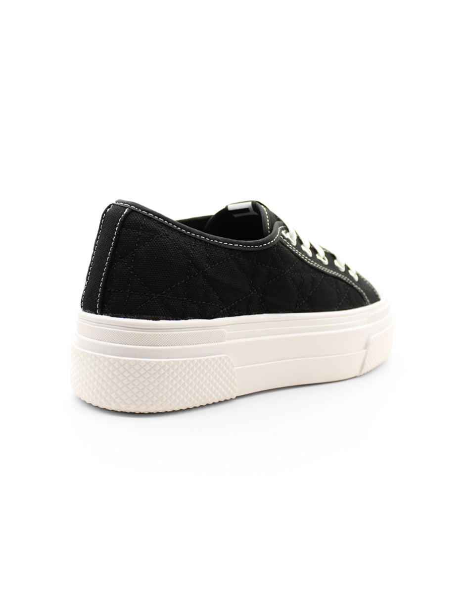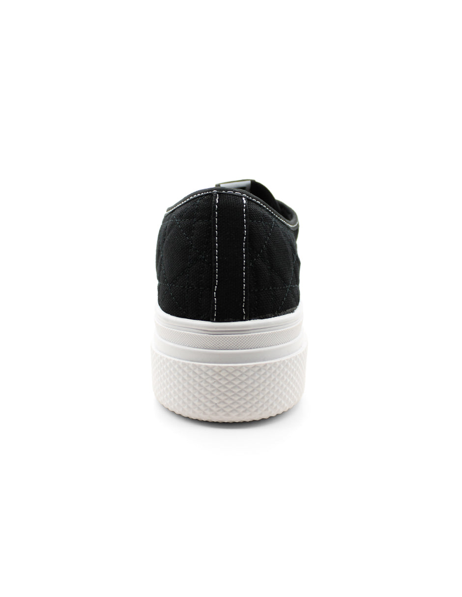 Tenis tipo deportivo color negro exterior textil, ajuste con agujeta, construcción vegano