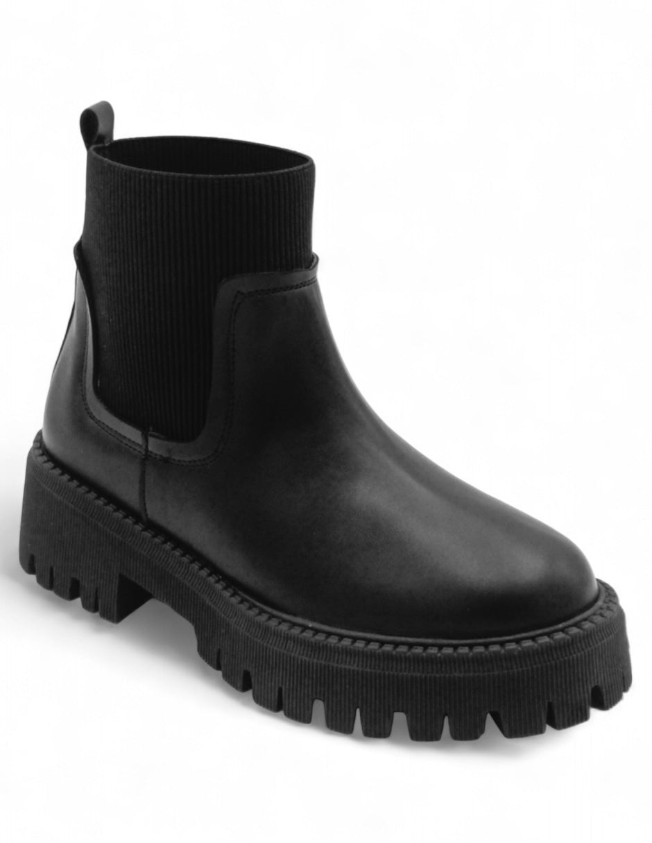 Estas botas casuales para mujer de RBCOLLECTION, modelo Bike, están confeccionadas en piel vegana de color negro, combinando estilo y funcionalidad. El diseño robusto incluye una suela gruesa y dentada que proporciona un excelente agarre y durabilidad. Los paneles elásticos laterales facilitan su colocación y aseguran un ajuste cómodo y seguro. Perfectas para combinar con jeans, leggings o faldas, estas botas añaden un toque moderno y práctico a cualquier atuendo, convirtiéndose en una adición versátil y chic a cualquier guardarropa. Ideales para el uso diario, estas botas ofrecen una opción sostenible y a la moda.