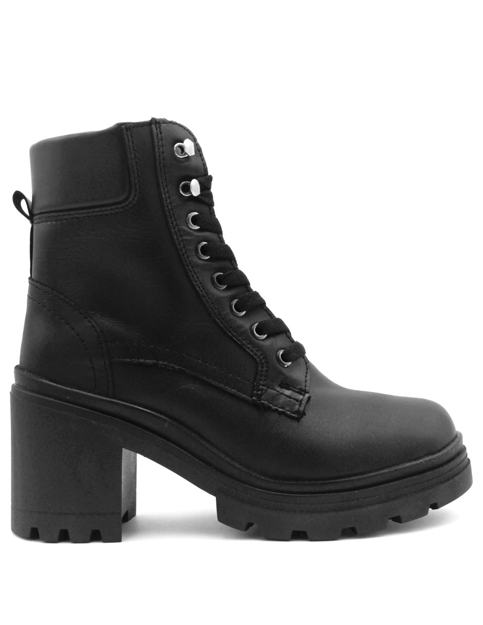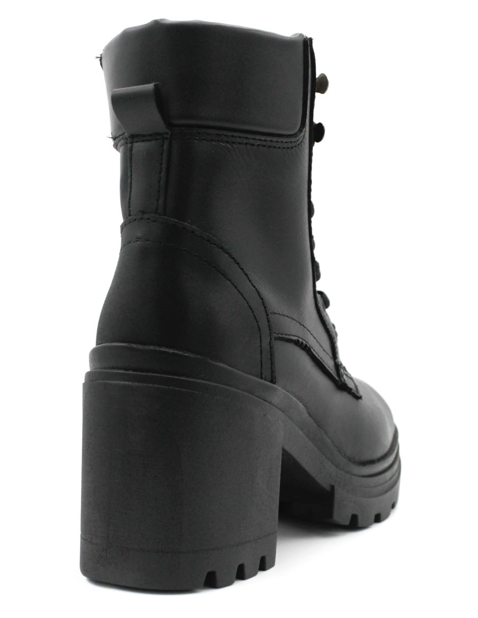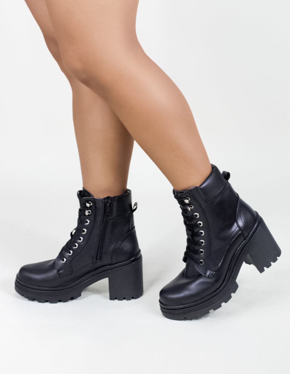 Este botín con tacón para mujer de RBCOLLECTION, confeccionado en piel de color negro, combina estilo y funcionalidad en un diseño contemporáneo y audaz. Con un cierre de cordones, estos botines aseguran un ajuste perfecto y personalizado. El tacón alto y la suela dentada proporcionan una elevación ideal y un excelente agarre, garantizando comodidad y estabilidad en cada paso. Los detalles metálicos en los ojales añaden un toque de sofisticación, mientras que la construcción robusta asegura durabilidad. Perfectos para combinar con jeans, faldas o vestidos, estos botines negros son una adición versátil y chic a cualquier guardarropa, ideales para diversas ocasiones y para quienes buscan un calzado a la moda y funcional.