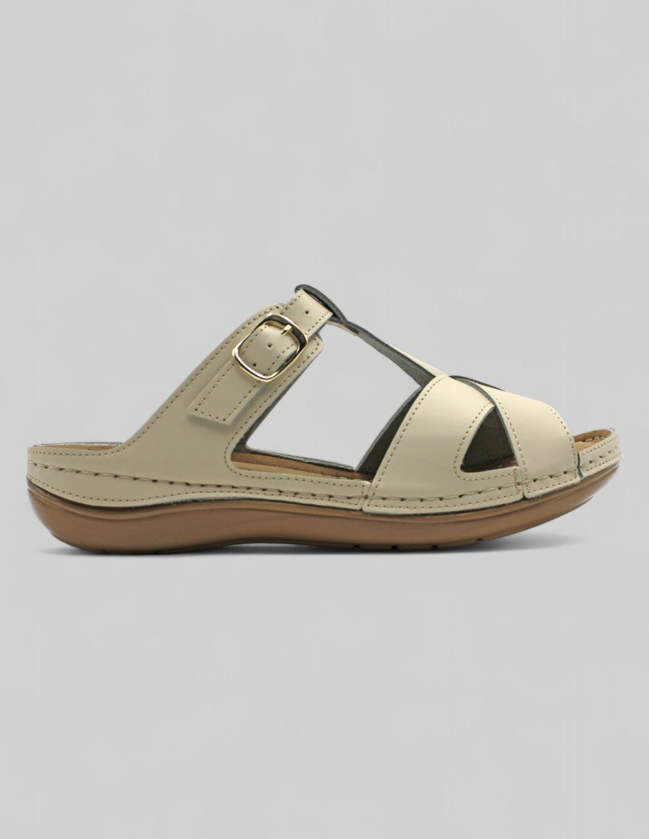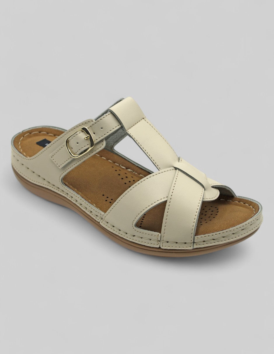 Las sandalias de piso de la línea RBCOLLECTION, modelo Daily, en piel vegana color beige ofrecen comodidad y estilo en un diseño práctico. Su ajuste es ideal para cualquier tipo de pie, mientras que su suela con canales antiderrapantes proporciona estabilidad en cada paso. Ligeras y versátiles, son la opción perfecta para el día a día. ¡Hazlas tuyas y camina con confianza!