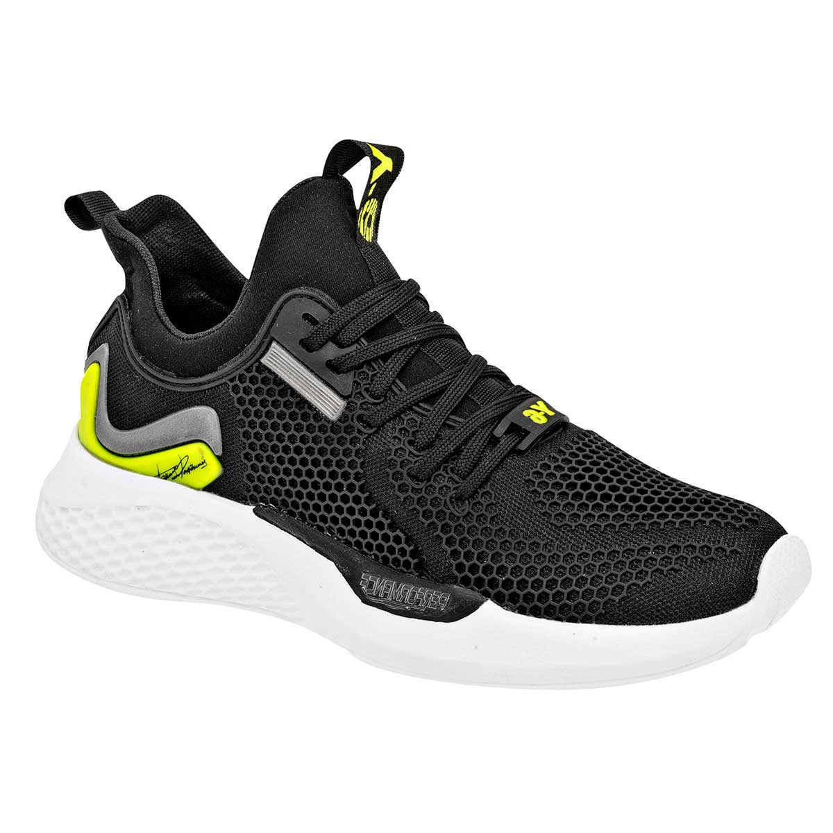 Tenis con cordones color negro exterior textil, ajuste con agujeta, construcción nacional