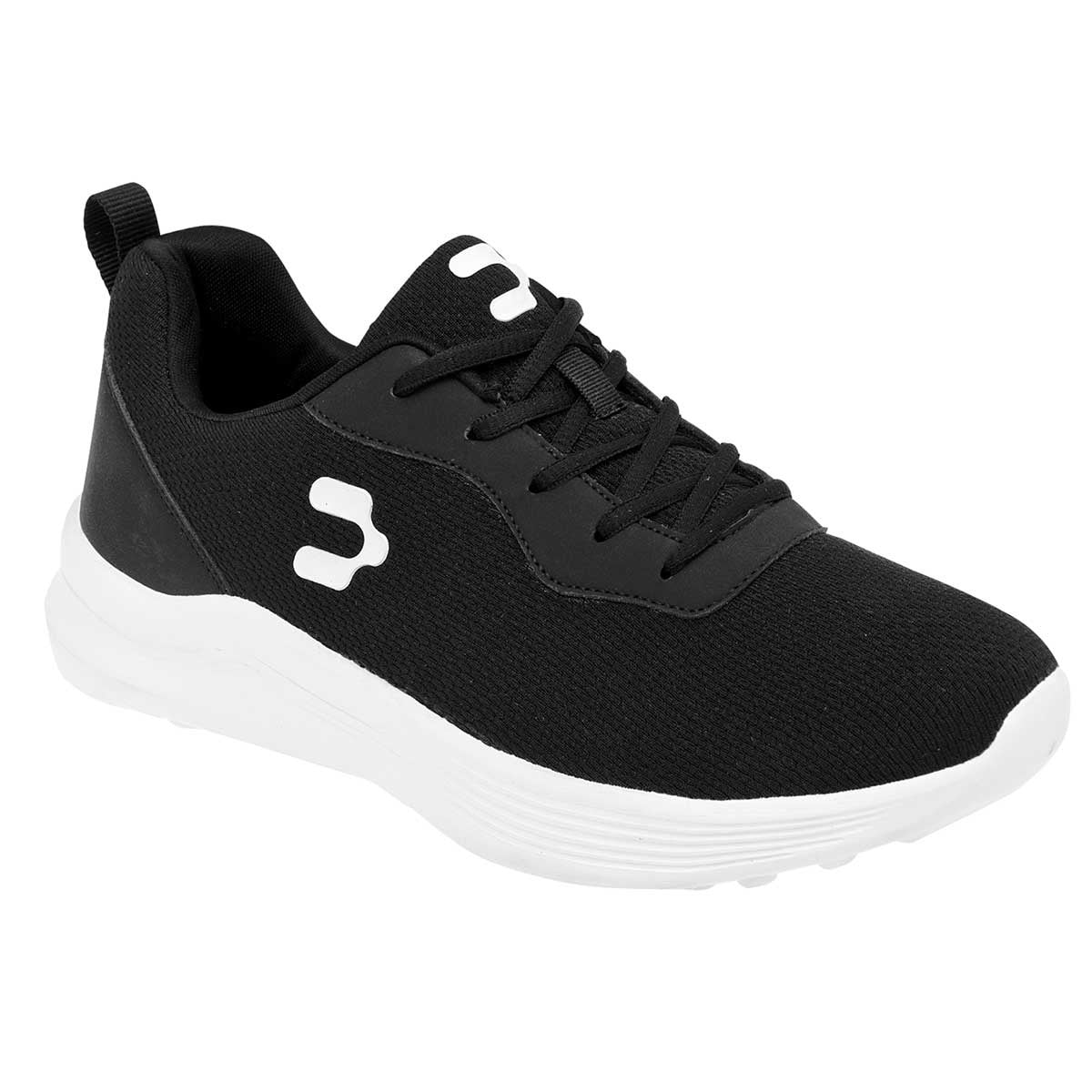 Tenis con cordones color negro exterior textil, ajuste con agujeta, construcción importado