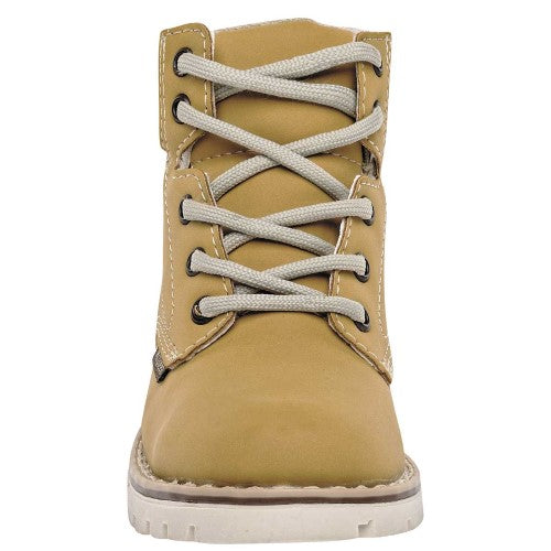 Botas color amarillo exterior sintético, ajuste con agujeta, construcción vegano