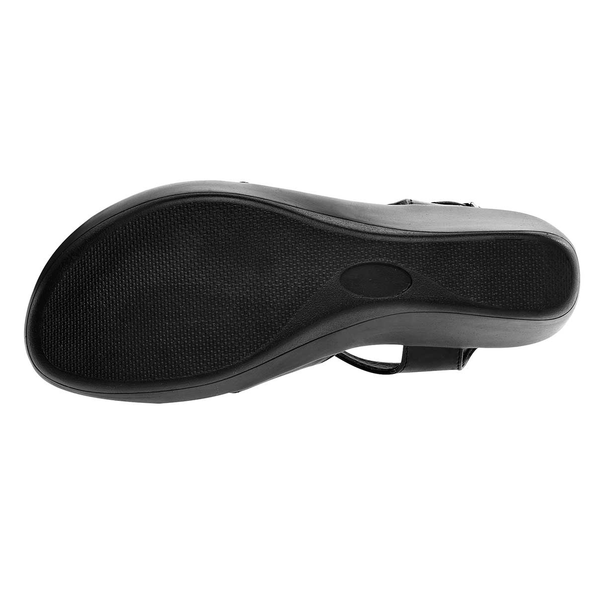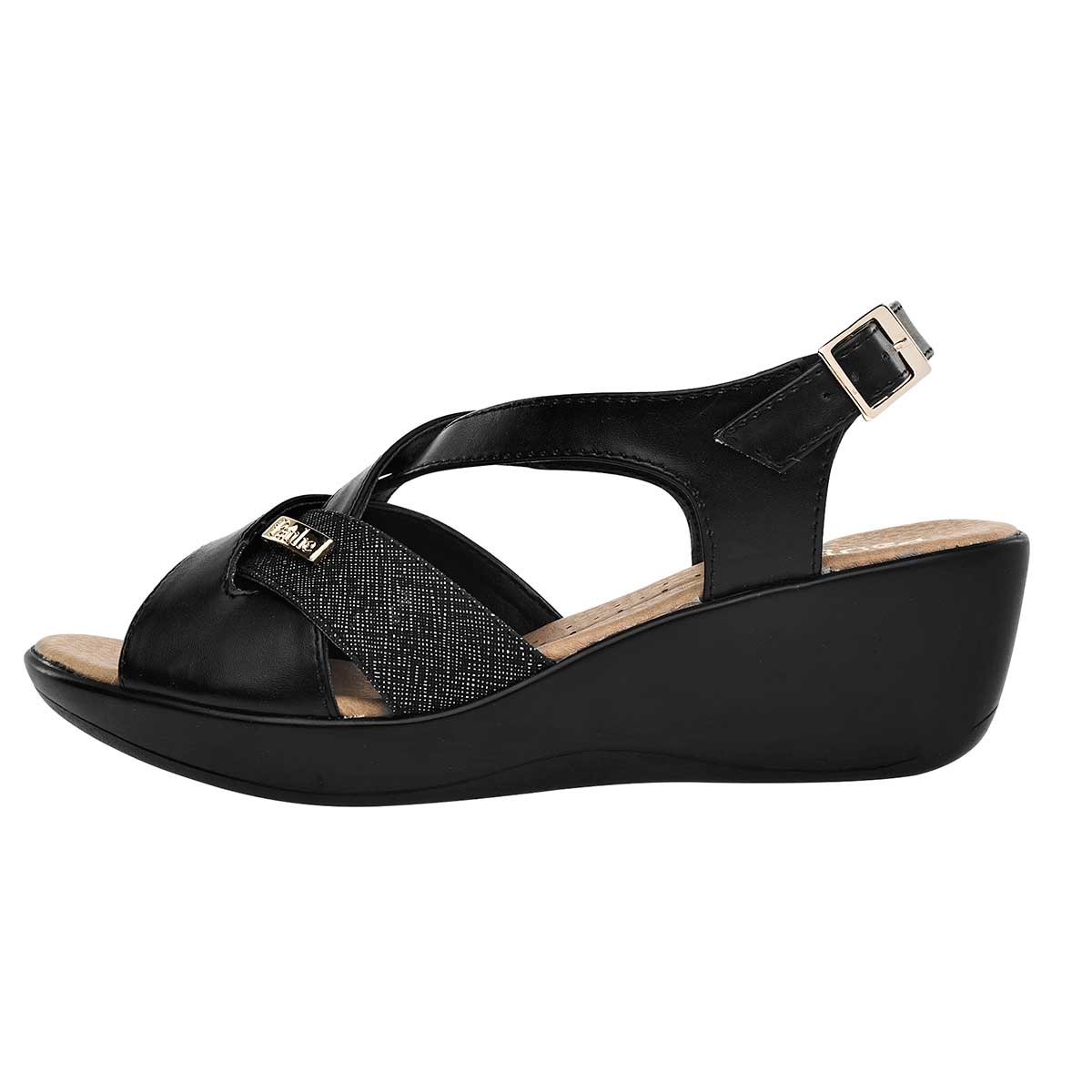 Sandalias con plataforma color negro exterior sintético, ajuste con hebilla, construcción vegano