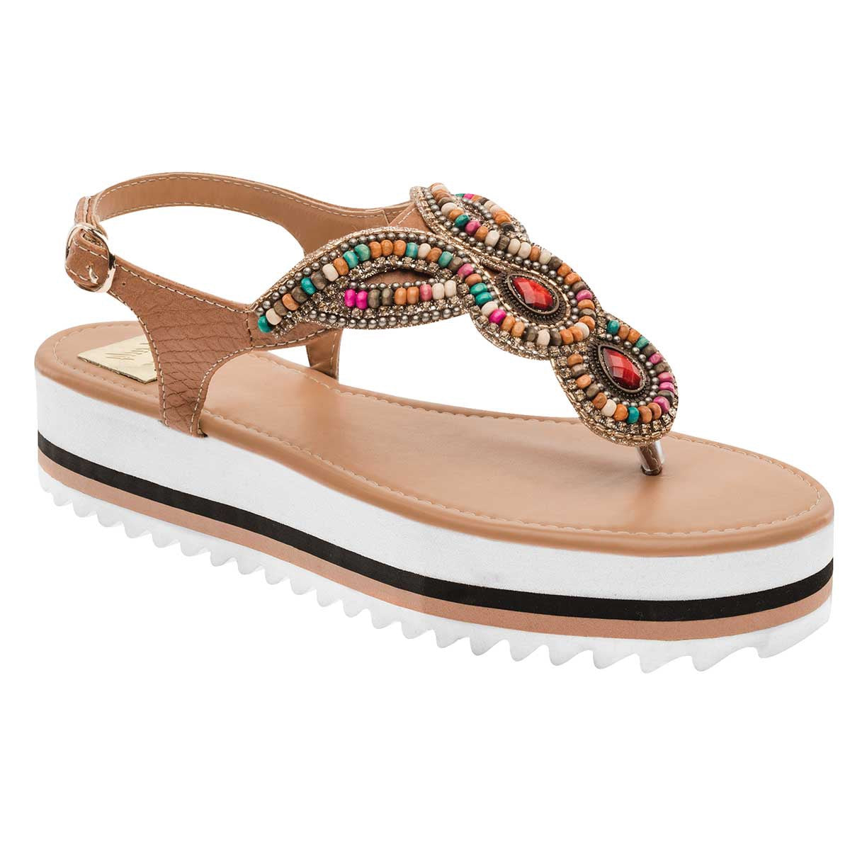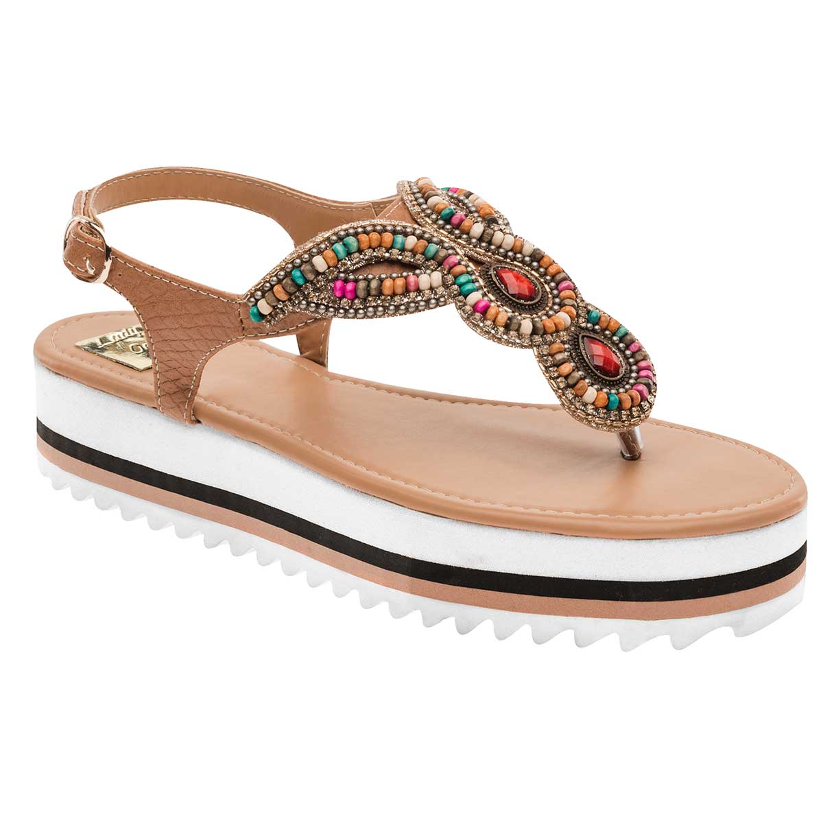 Sandalias con plataforma color camel exterior sintético, ajuste con hebilla, construcción vegano
