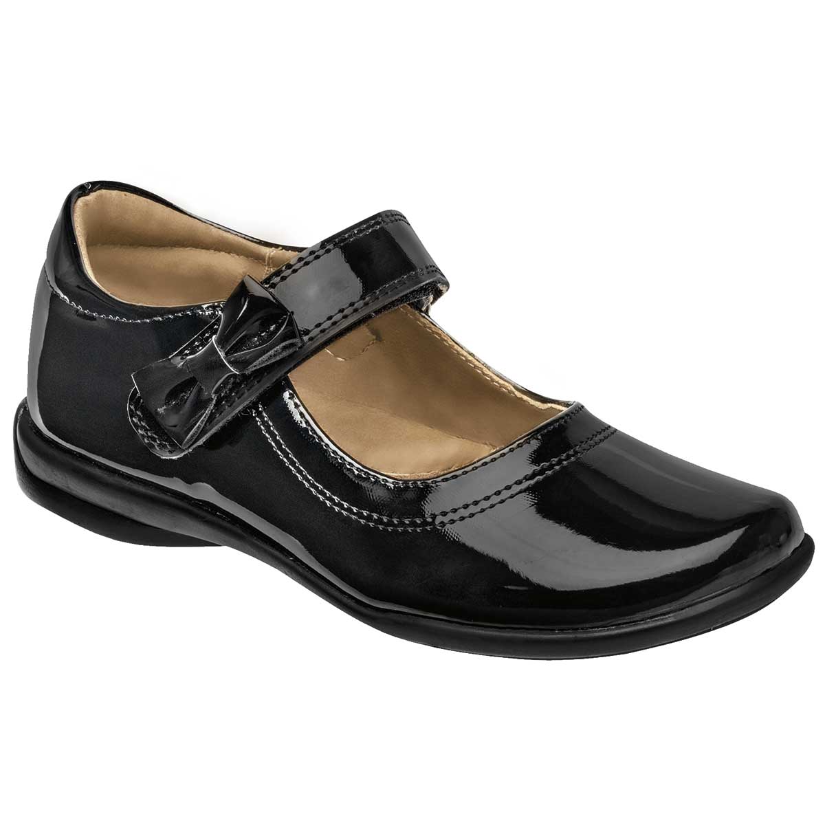 Zapatos mary jane color negro de charol exterior sintético, ajuste con velcro, construcción vegano