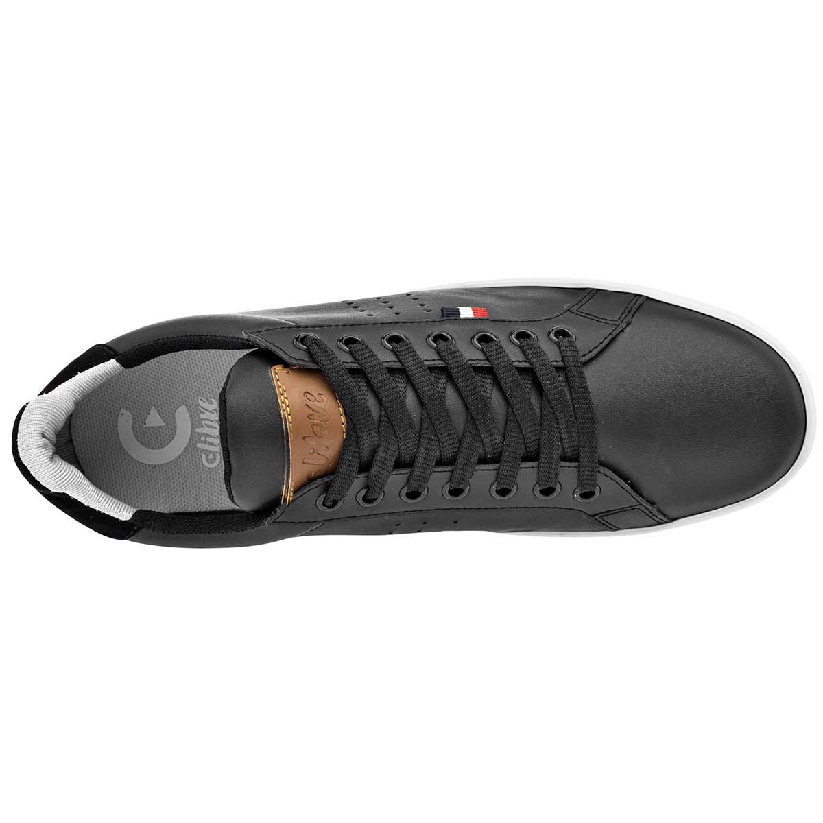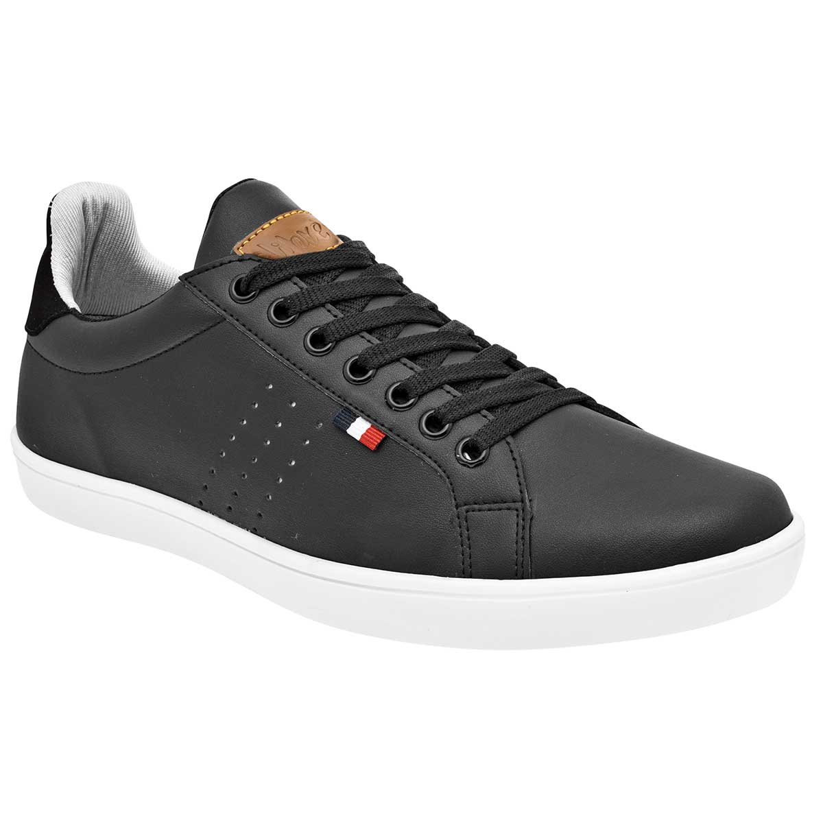 Tenis con cordones color negro exterior sintético, ajuste con agujeta, construcción vegano