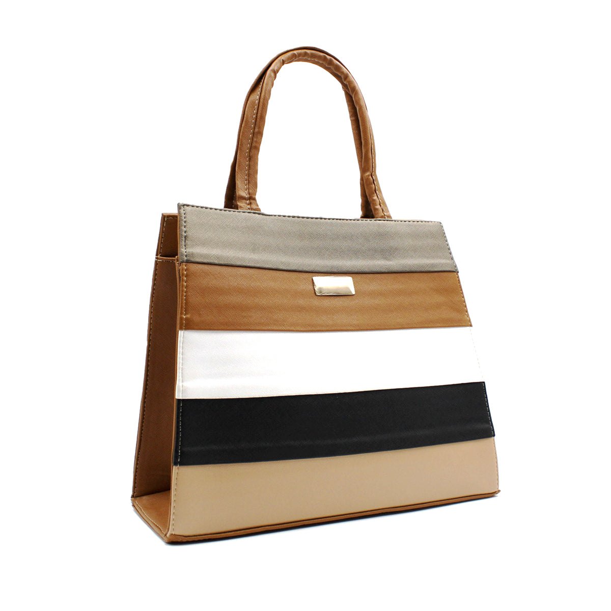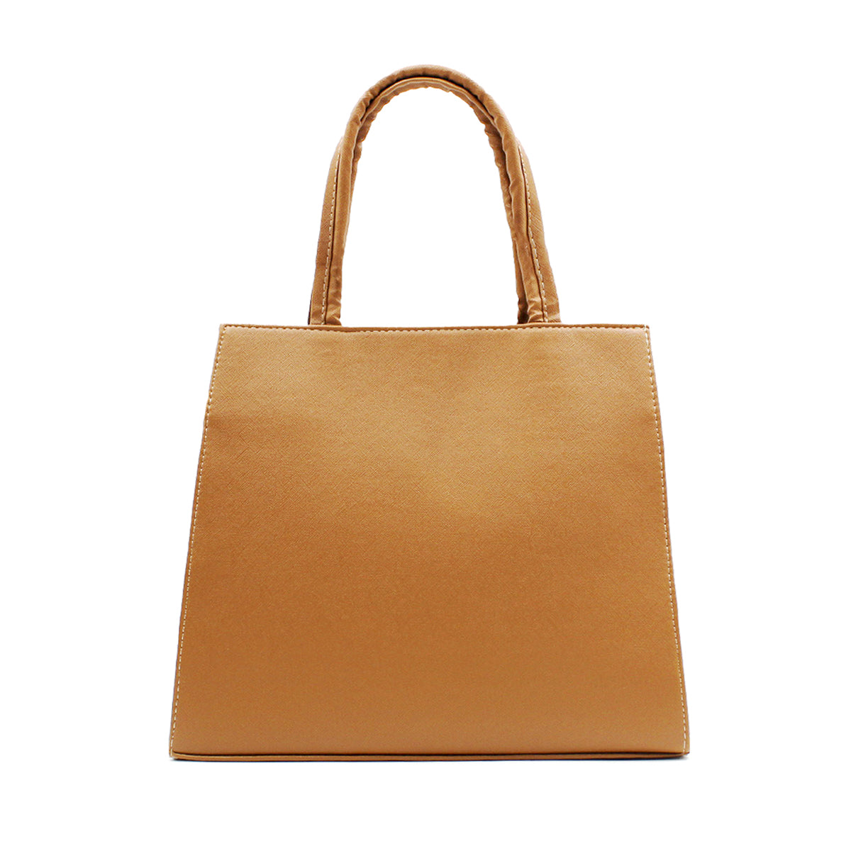 Satchel color café exterior piel sintética, ajuste con doble asa, construcción vegano