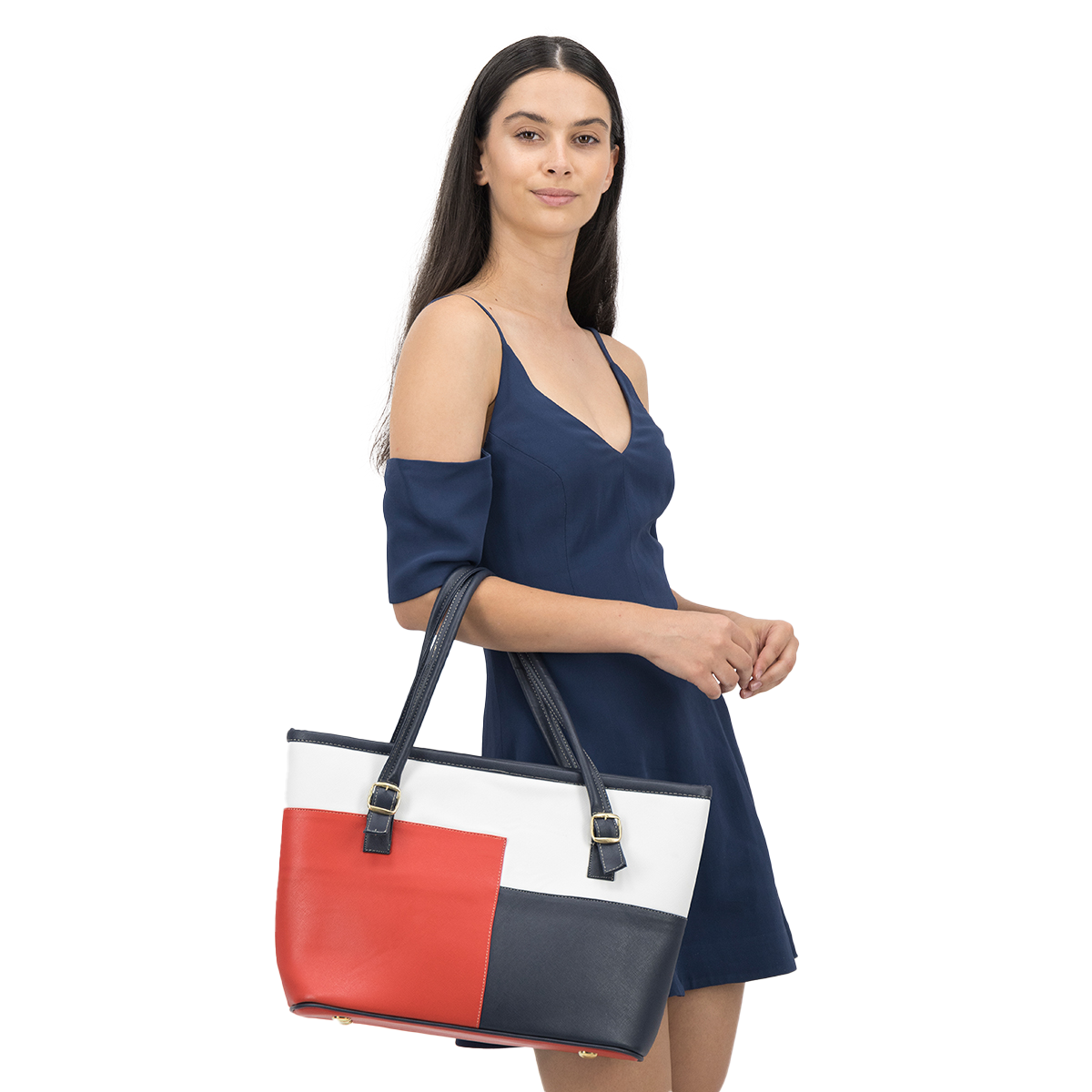 Bolsa Tote Doble asa Color Marino Con Rojo Exterior Piel sintética de RBCOLLECTION