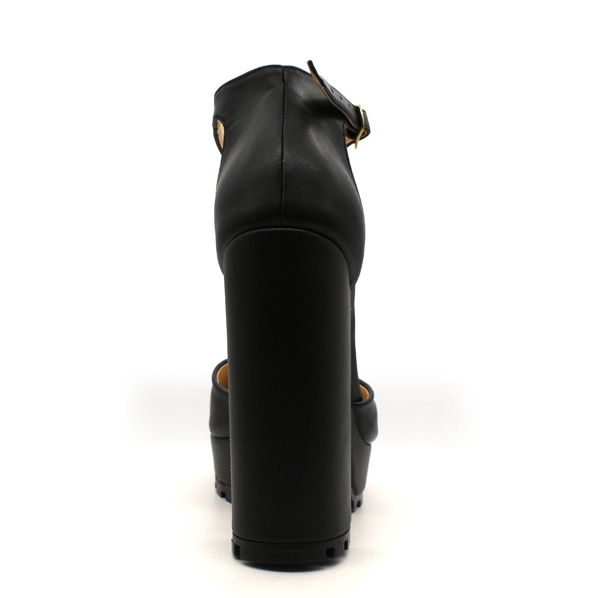 Zapatillas color negro exterior piel sintético, ajuste con hebilla, construcción vegano