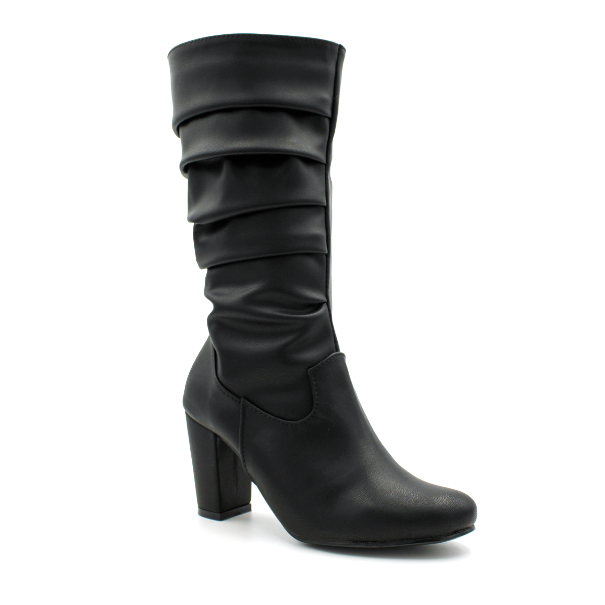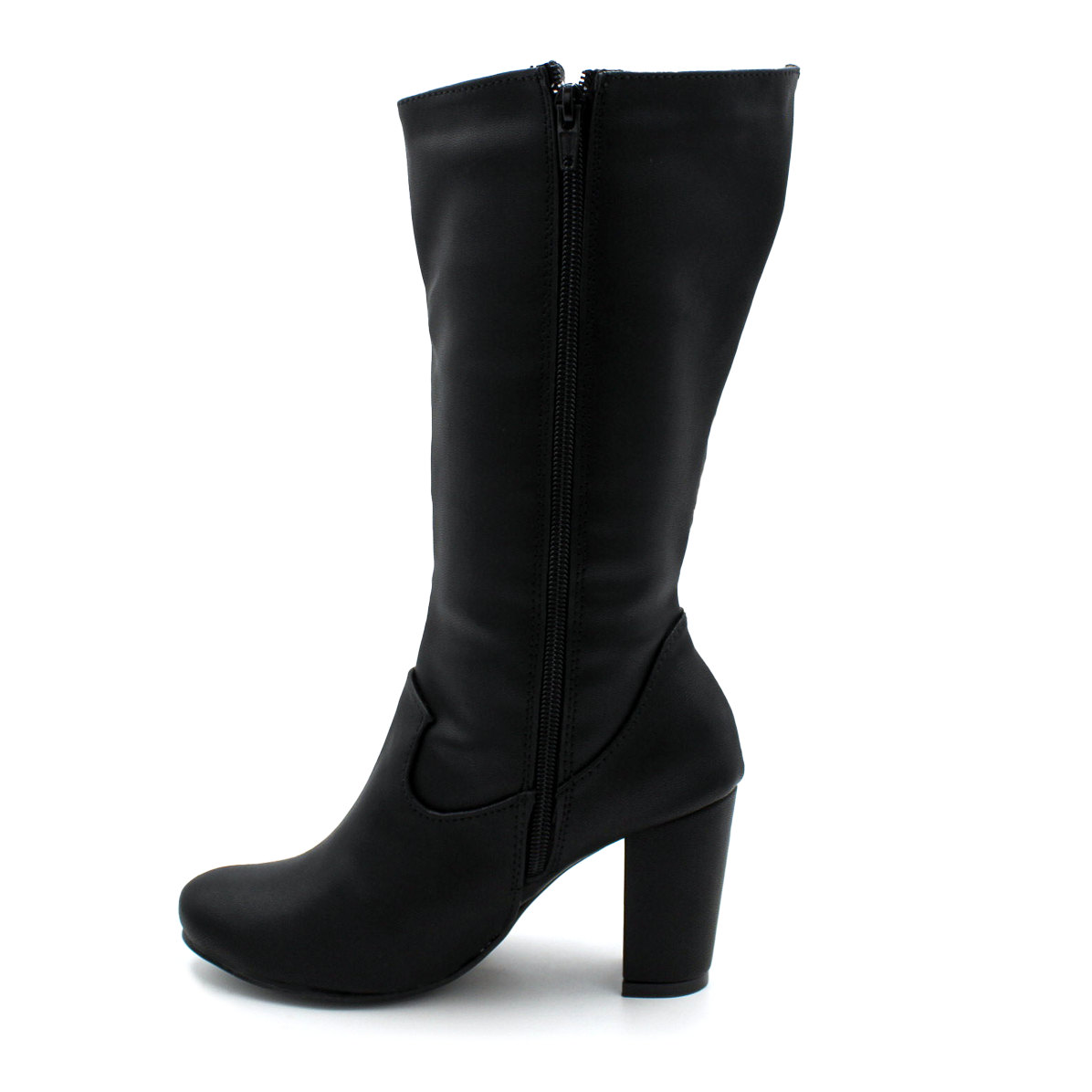 Botas altas color negro exterior sintético, ajuste con cierre, construcción vegano