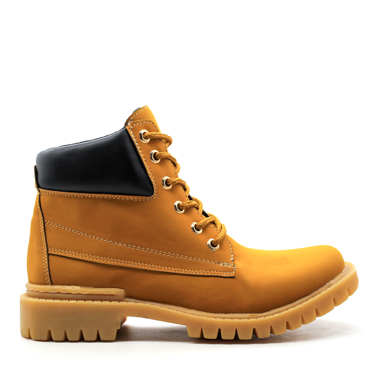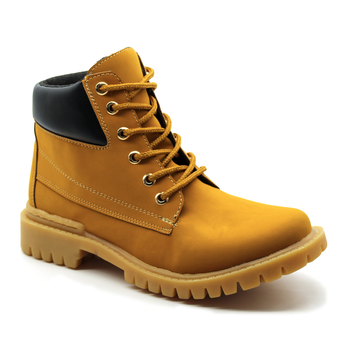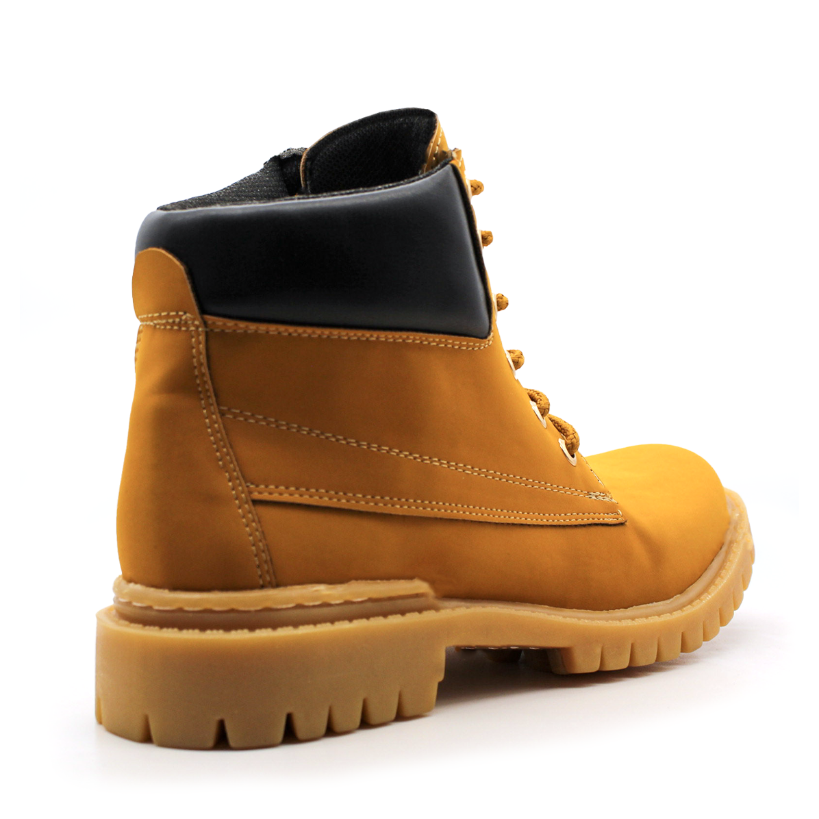 Botas casuales color amarillo exterior sintético, ajuste con agujeta, construcción vegano
