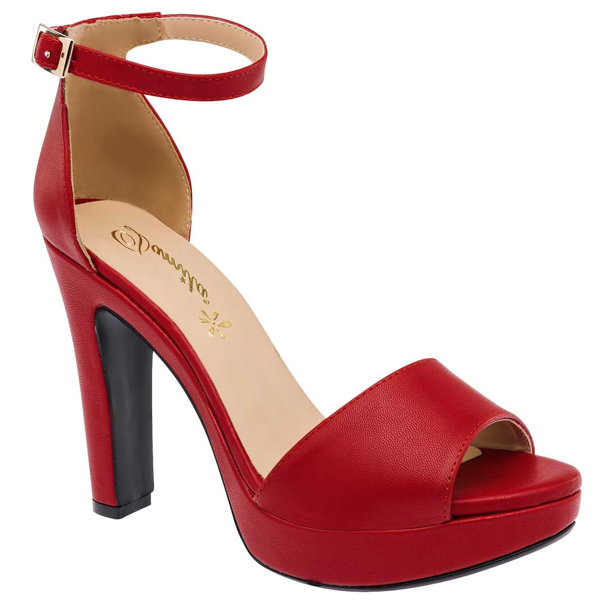 • Sandalia con Tacón Exterior Sintético Color Rojo Para Mujer De Damita