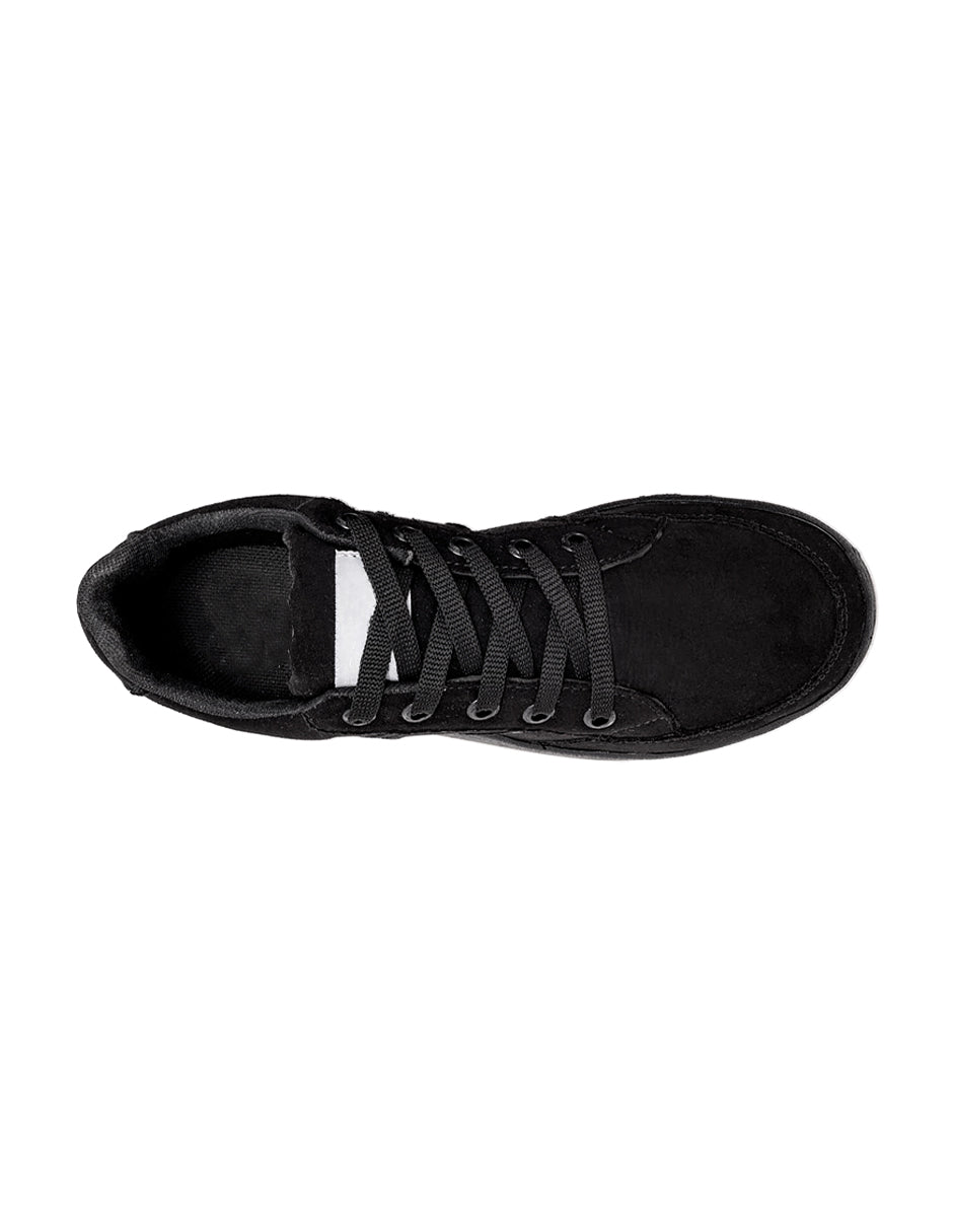 Tenis con cordones color negro exterior sintético, ajuste con agujeta, construcción vegano