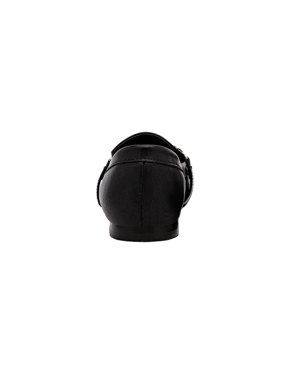 Flats clásicas color negro exterior sintético, ajuste con 1 tiempo, construcción vegano
