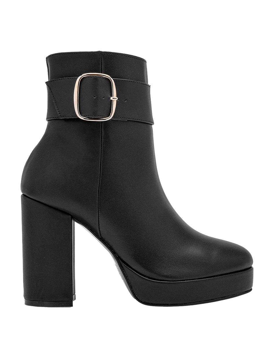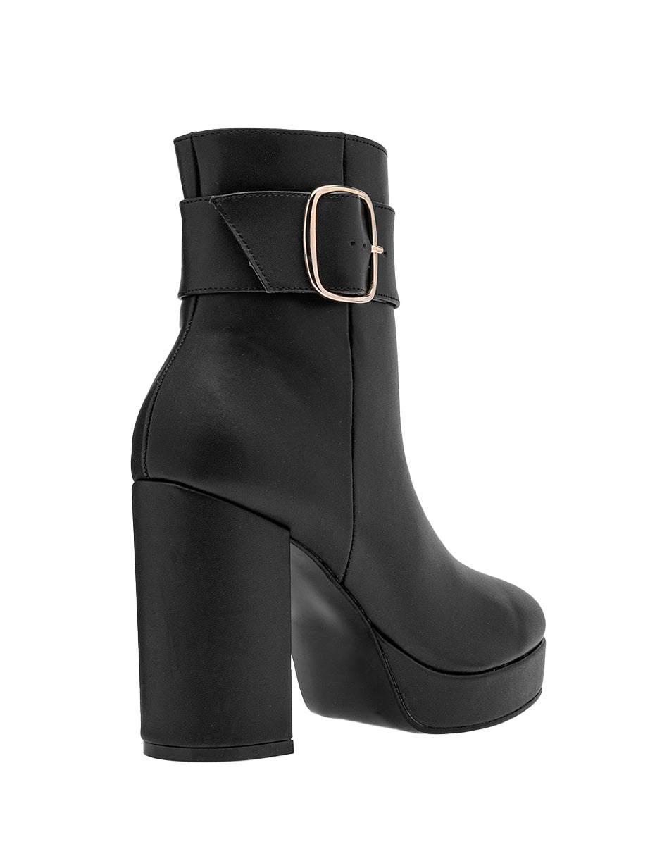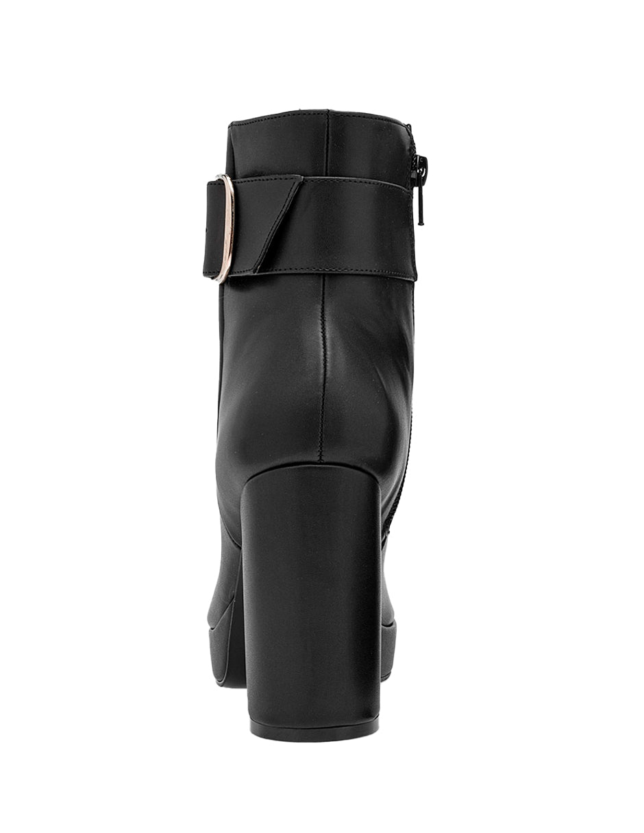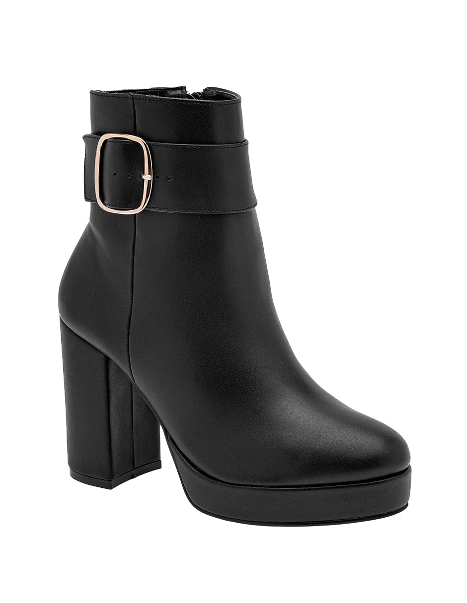 Botín con tacón color negro exterior textil, ajuste con cierre, construcción vegano