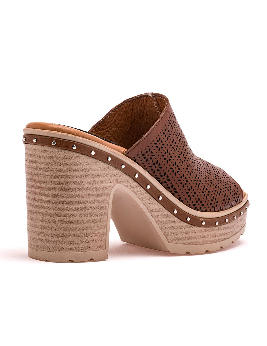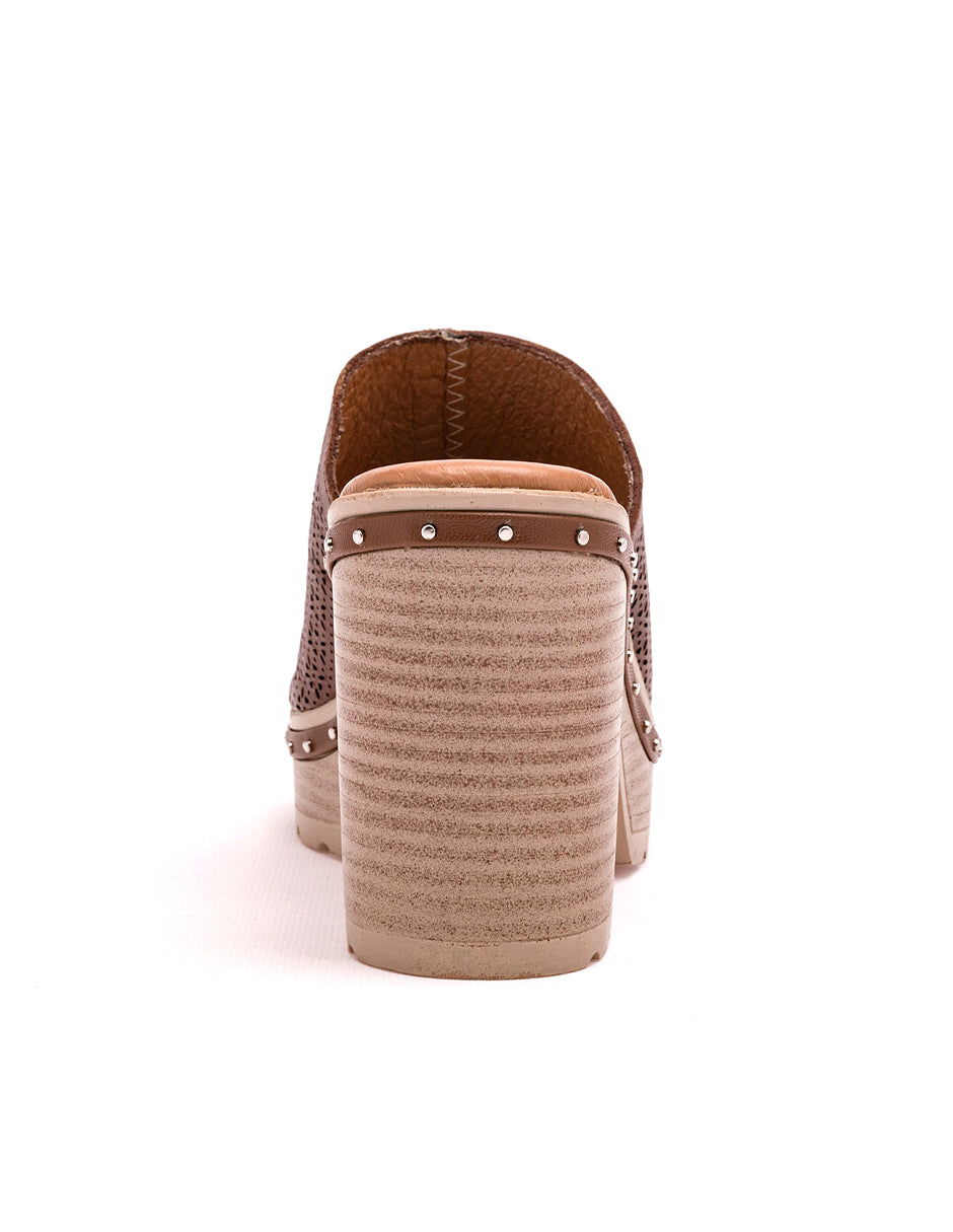 Sandalia con Tacón Exterior Piel Color Café Para Mujer De RBCOLLECTION