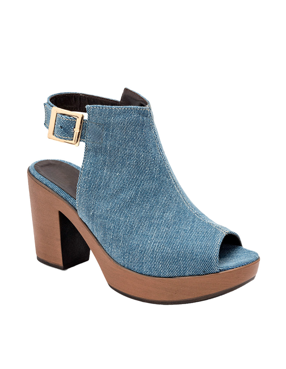Sandalia con tacón Exterior Textil Color Mezclilla Para Mujer De RBCOLLECTION
