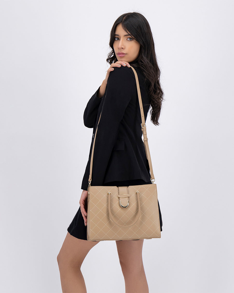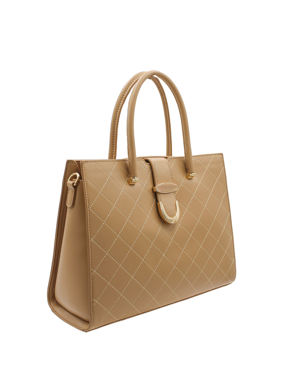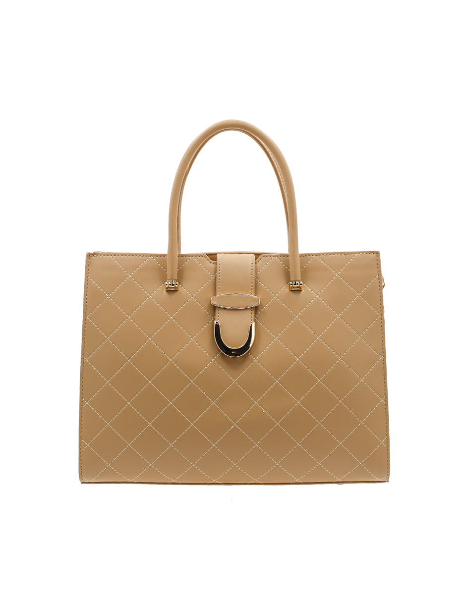Satchel color beige  exterior piel sintética, ajuste con doble asa, construcción vegano