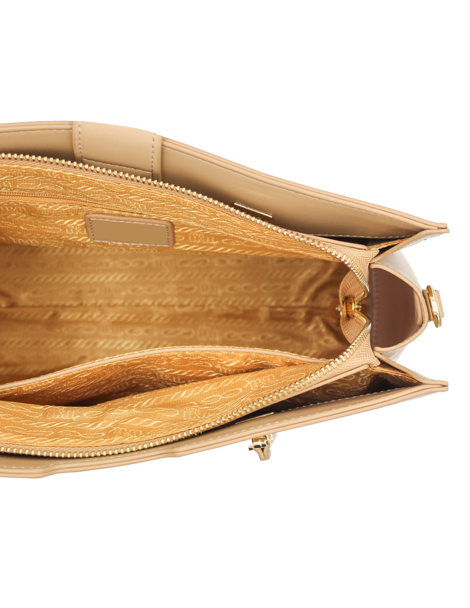 Bolsa Satchel Doble asa Color Beige Exterior Piel sintética de RBCOLLECTION