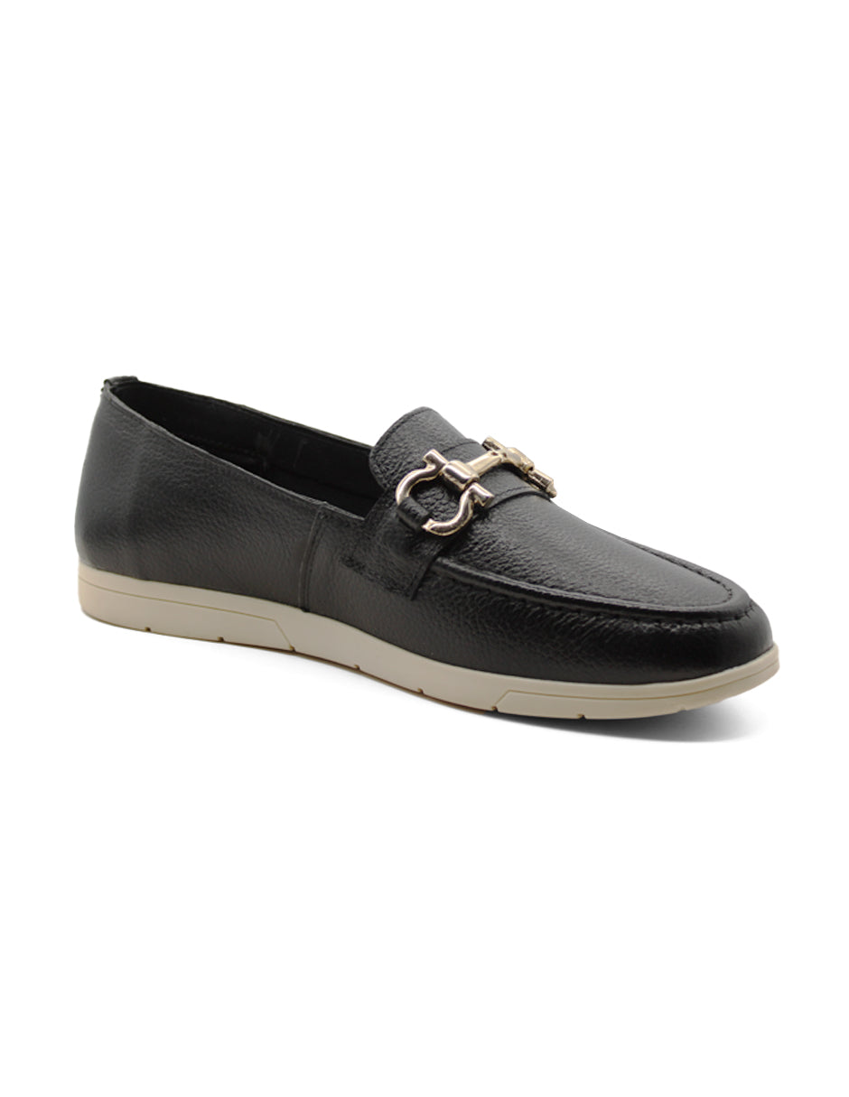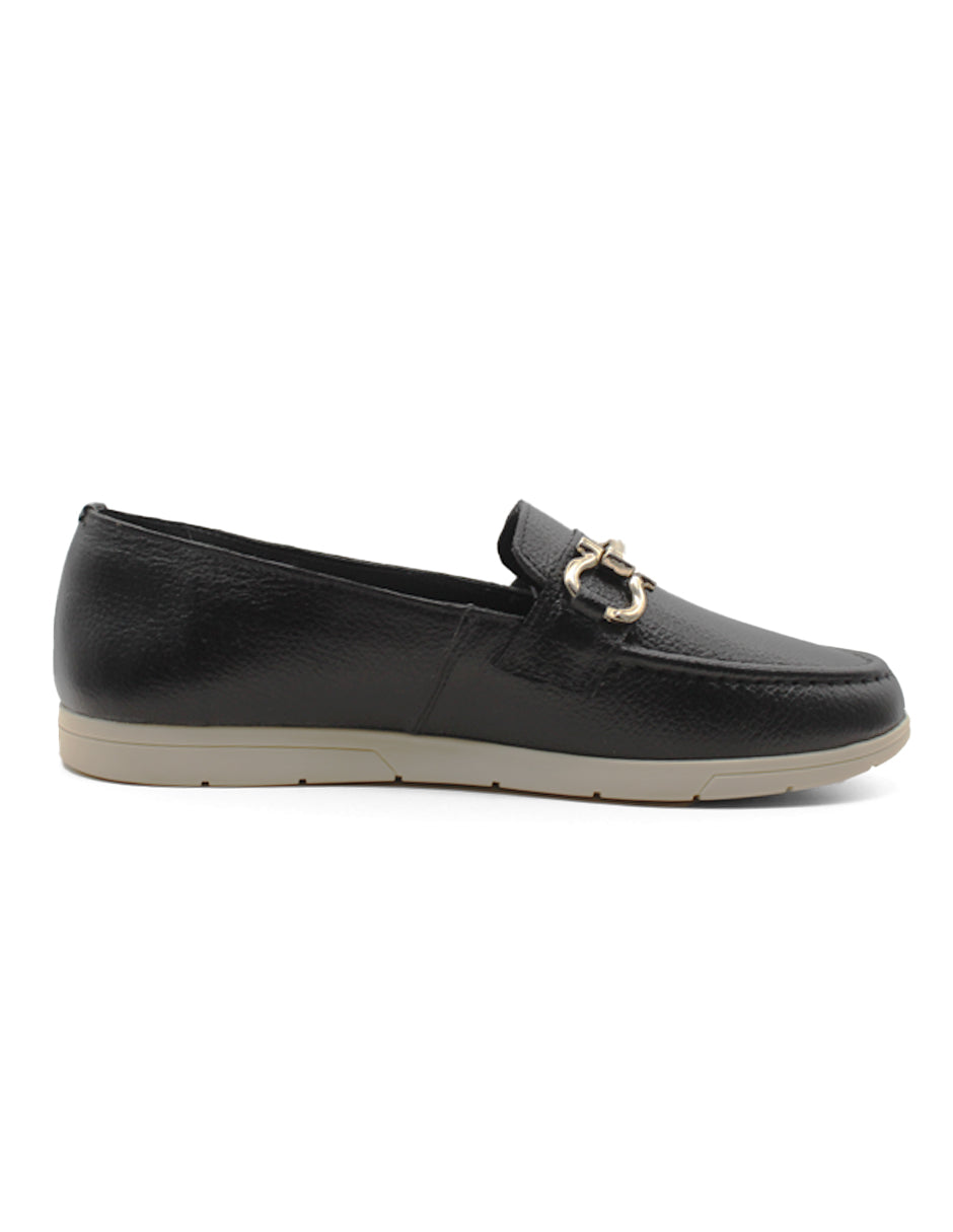 Loafers color negro exterior piel, ajuste con 1 tiempo, construcción nacional