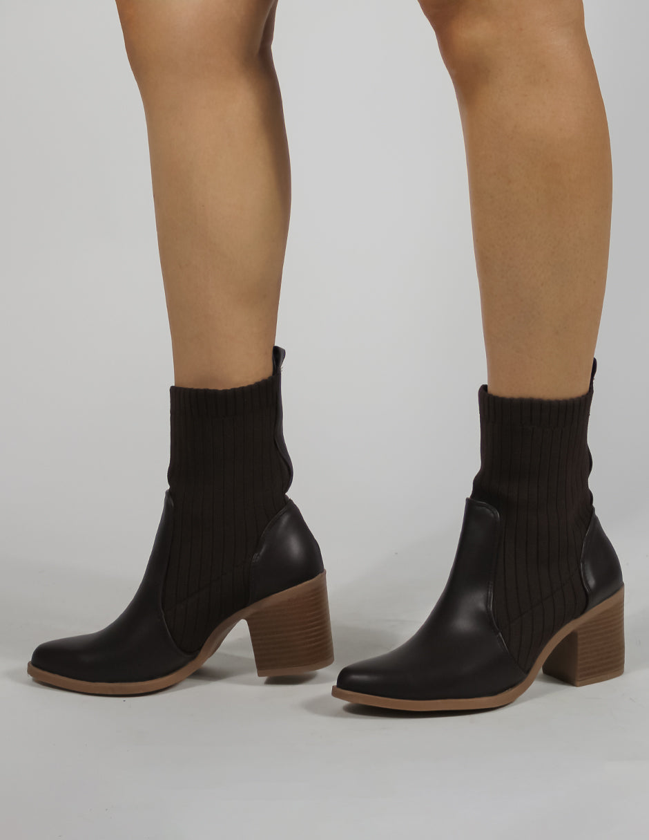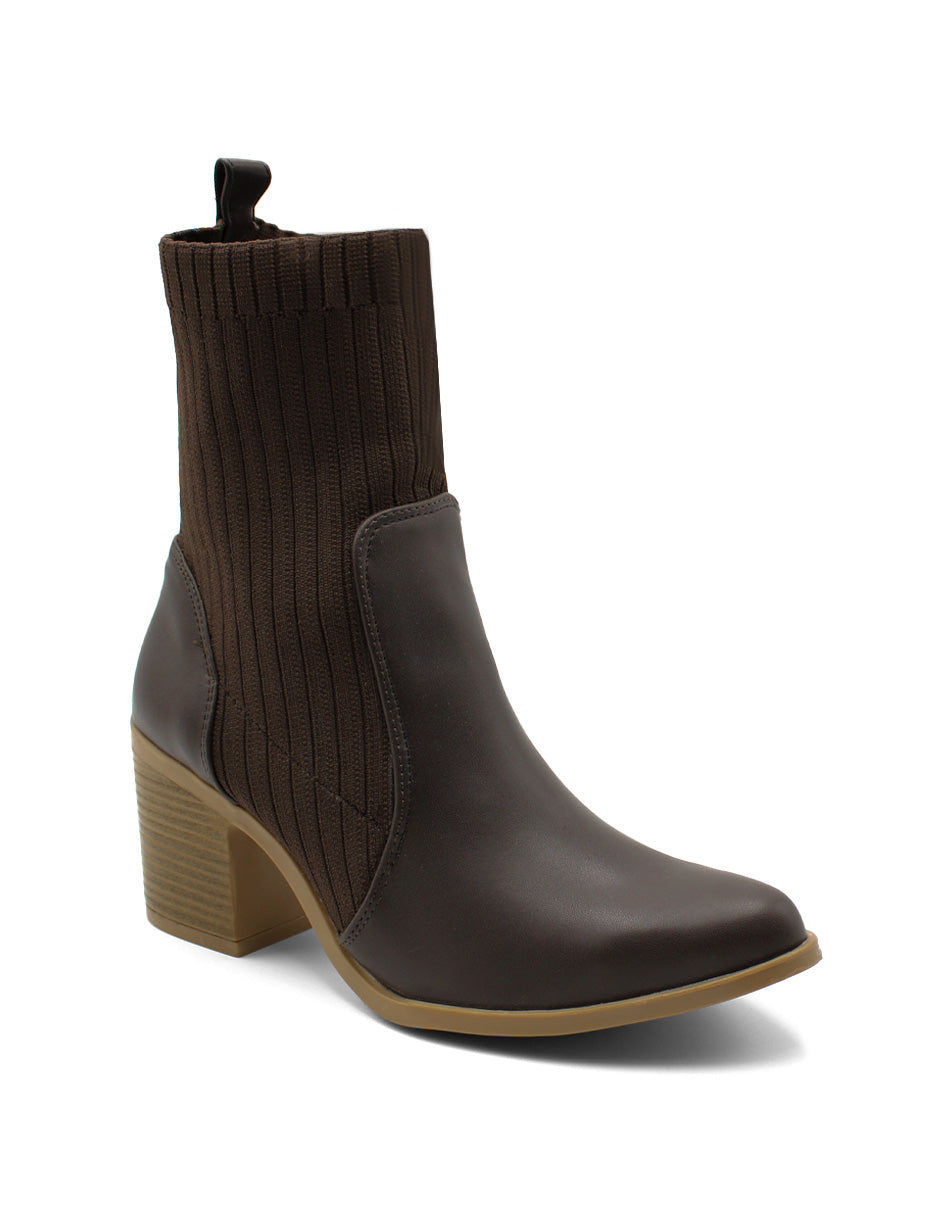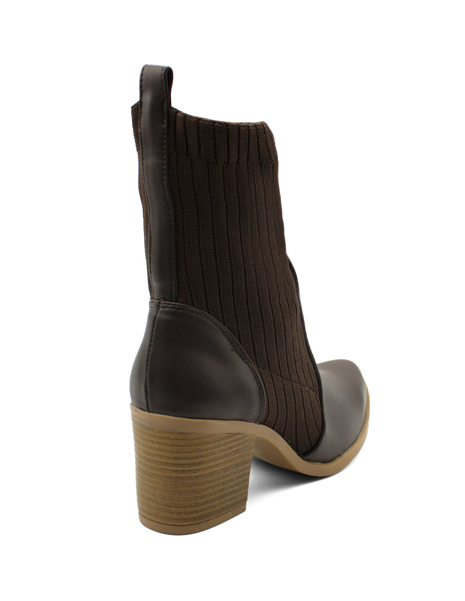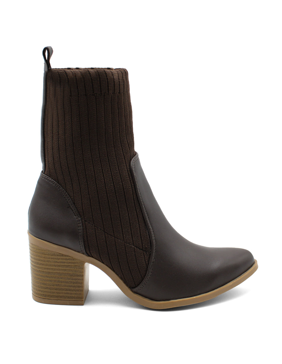 Botín con tacón color café exterior sintético, ajuste con 1 tiempo, construcción vegano