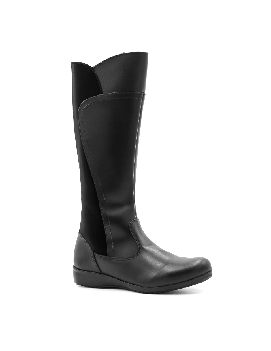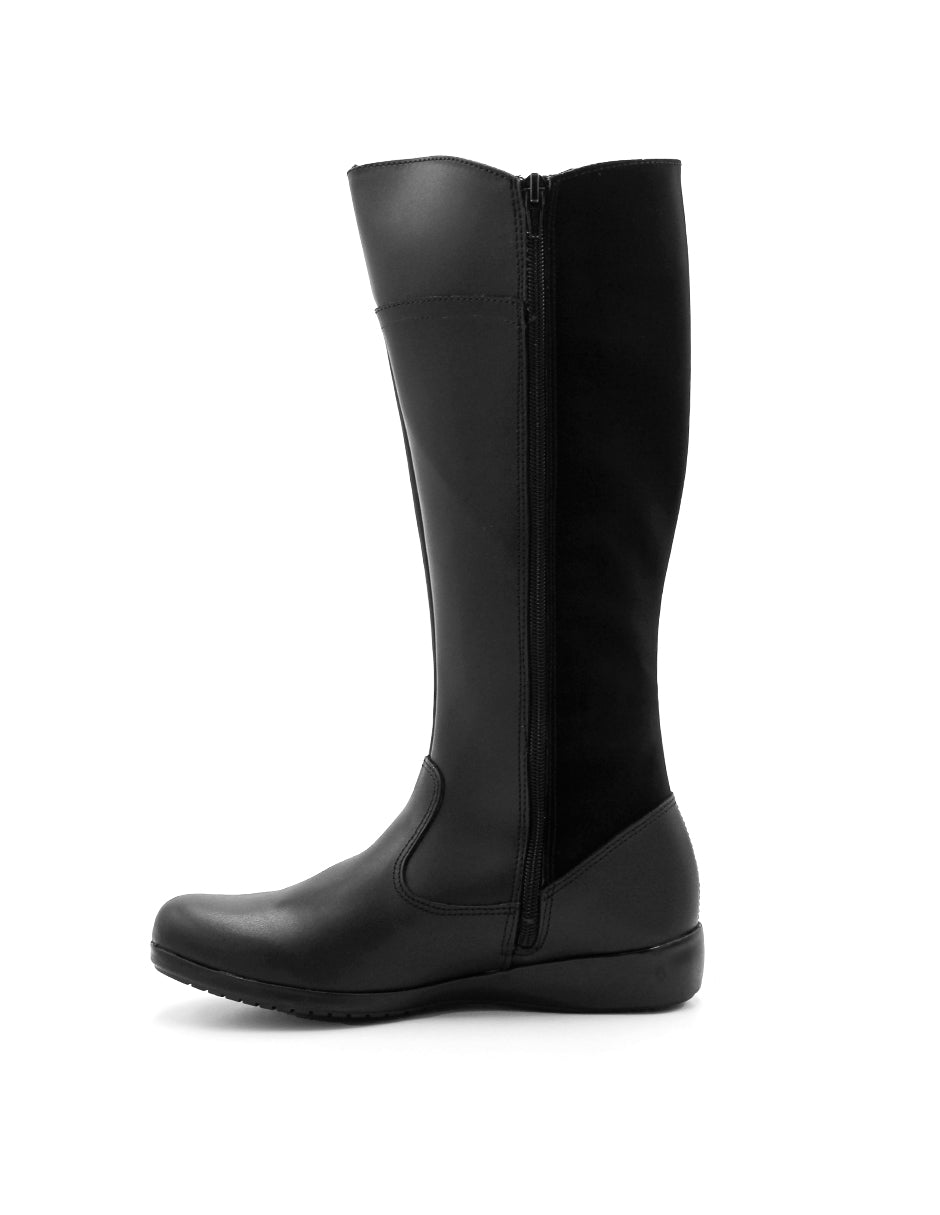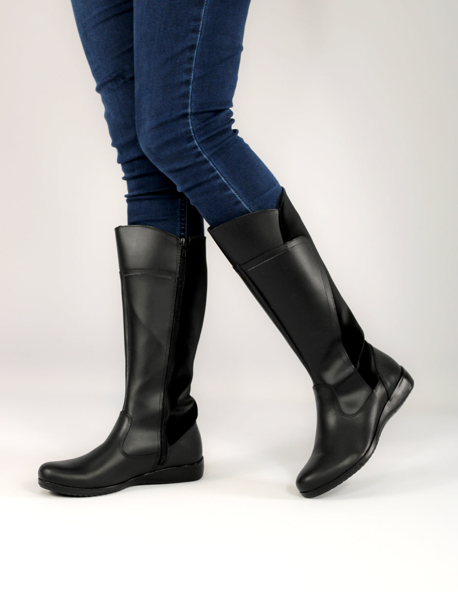 Botas altas color negro exterior textil, ajuste con cierre, construcción vegano