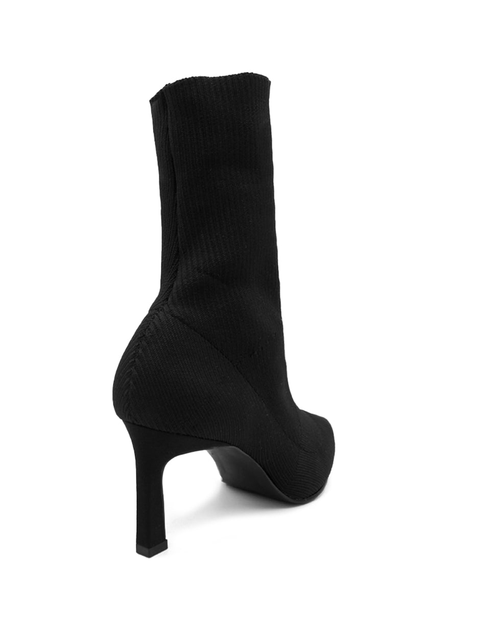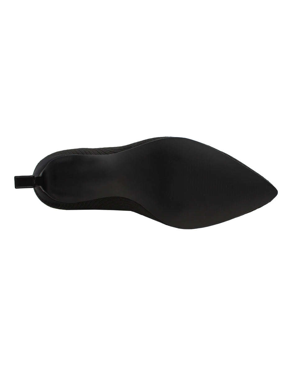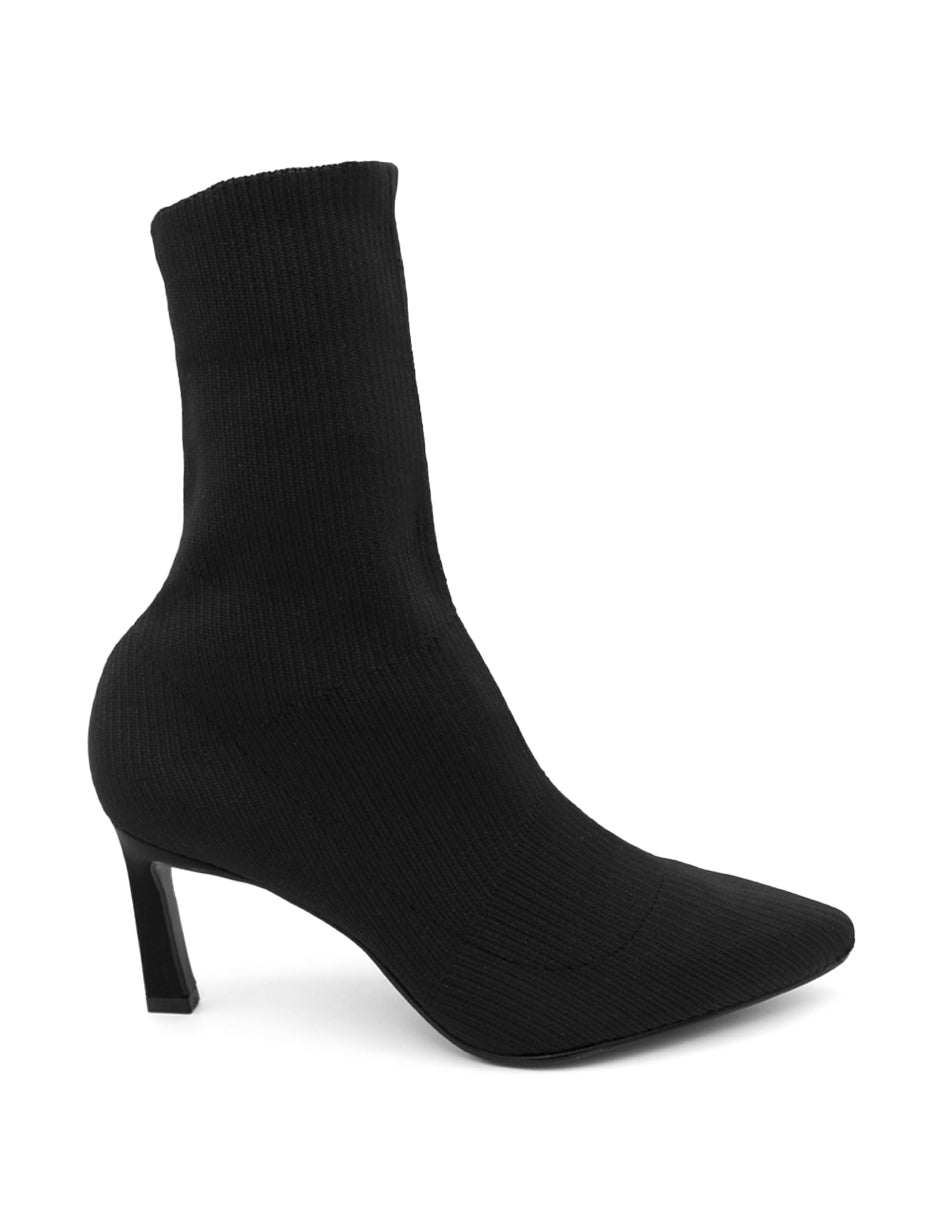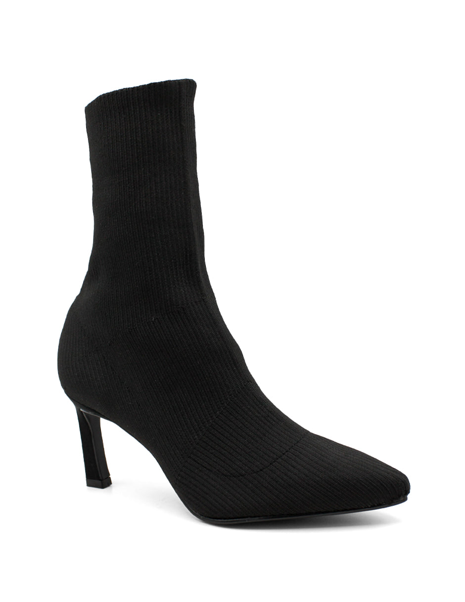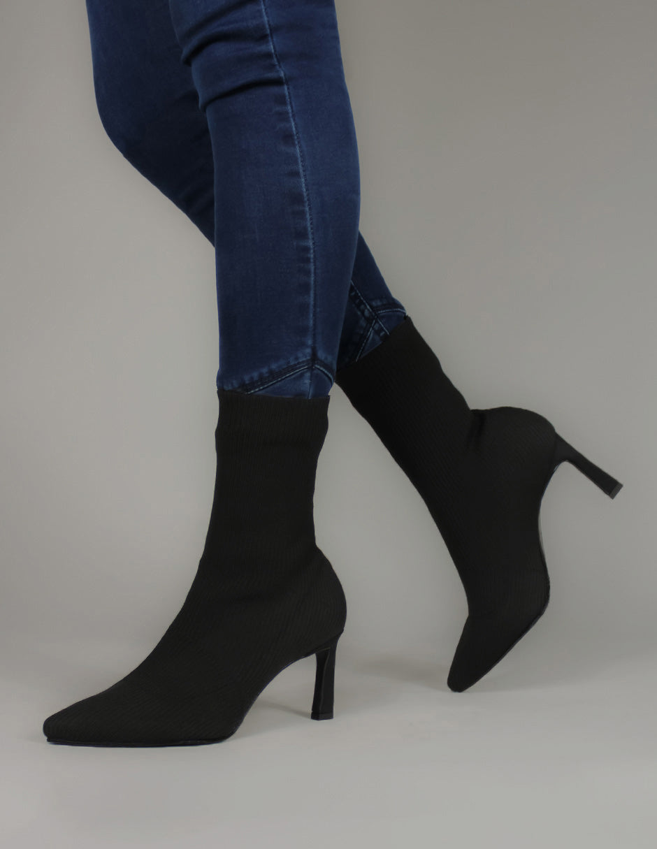 Botín con tacón color negro exterior textil, ajuste con resorte, construcción vegano