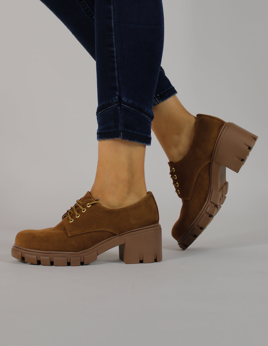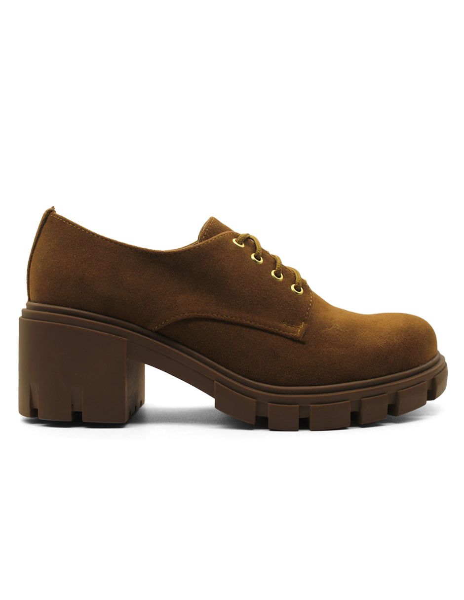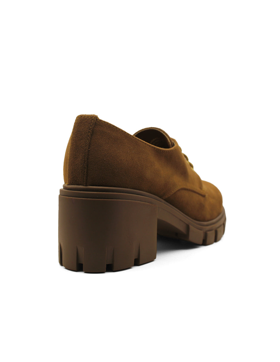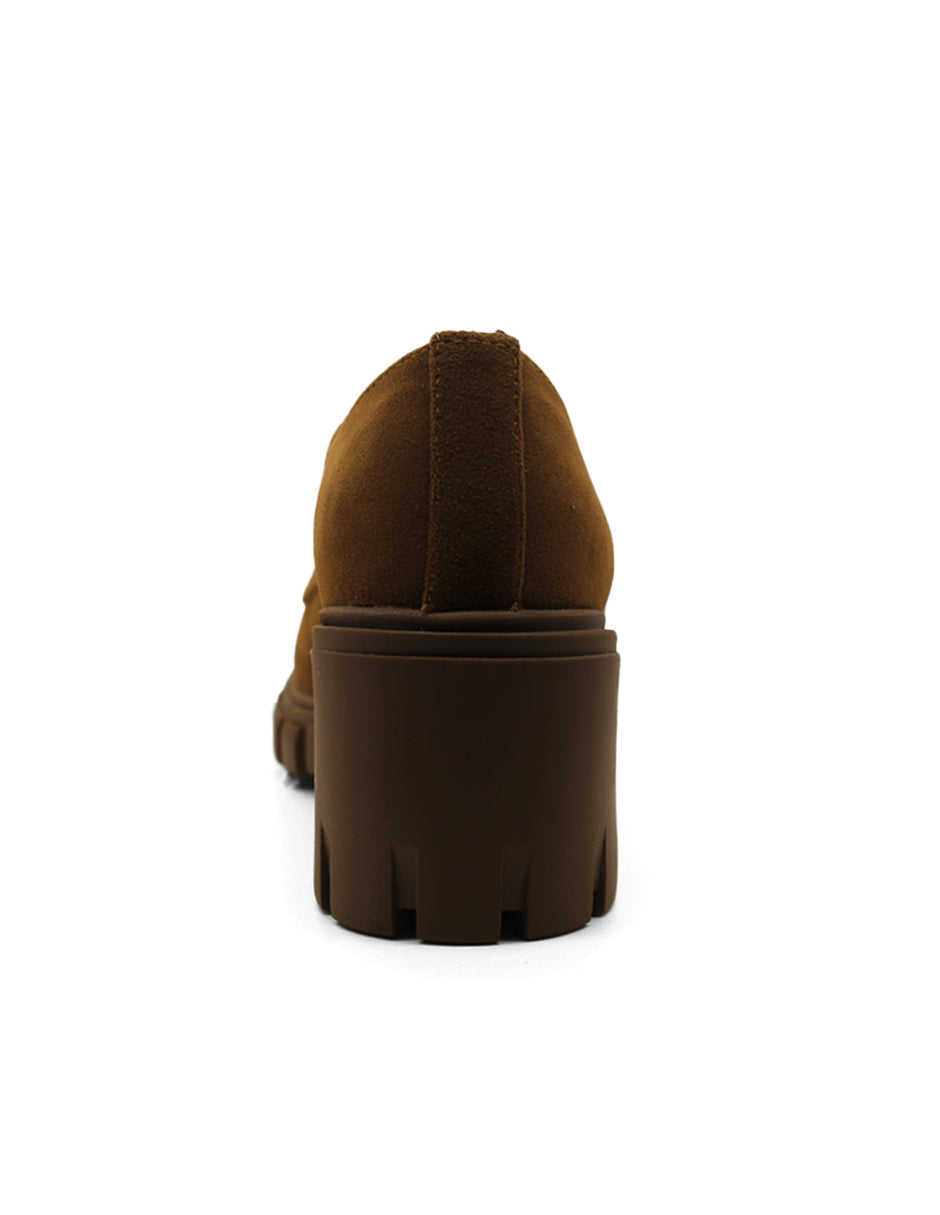 Mocasines color camel exterior textil, ajuste con agujeta, construcción vegano
