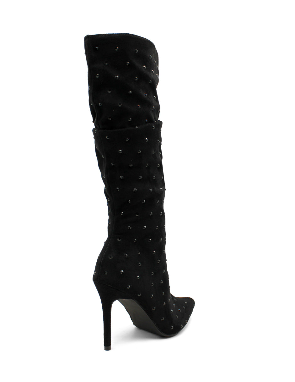 Botín con tacón color negro exterior textil, ajuste con cierre, construcción vegano