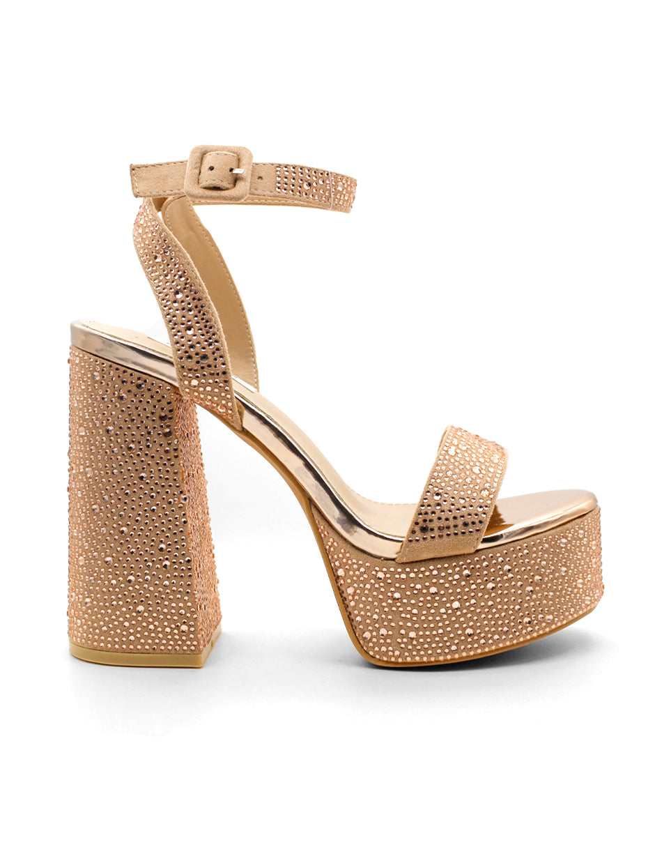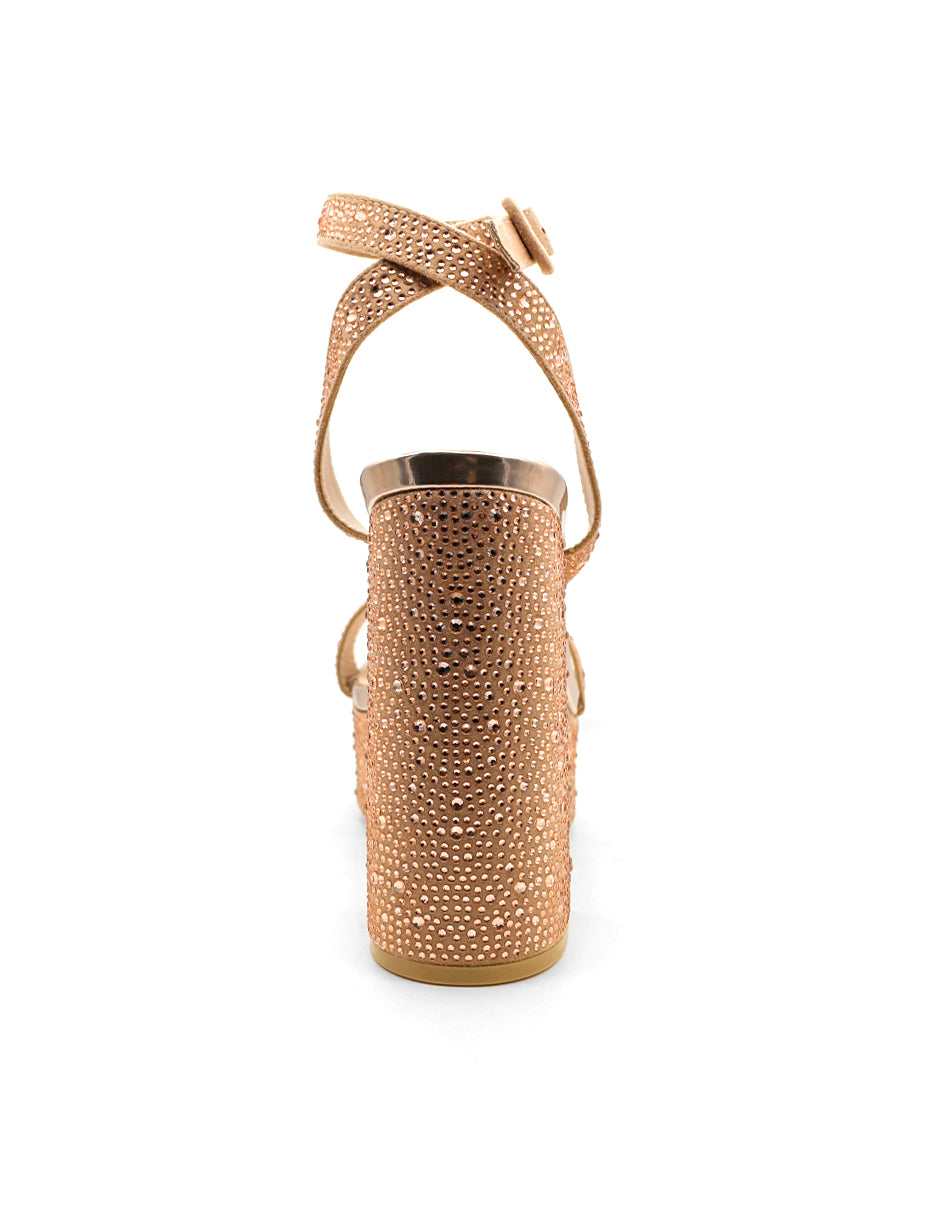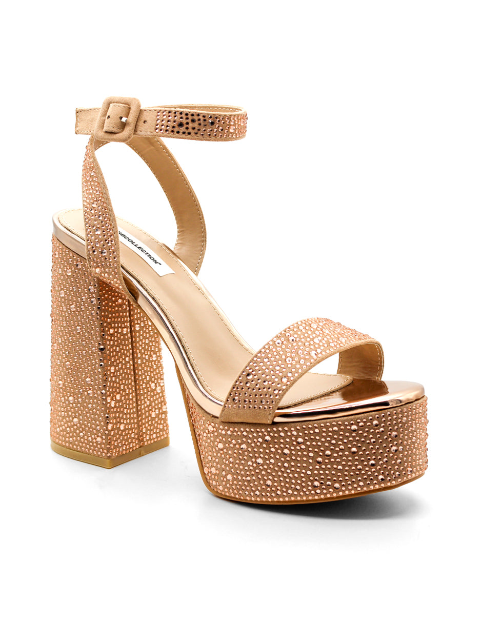 Sandalia con Tacón Exterior Sintético Color Dorado Para Mujer De RBCOLLECTION