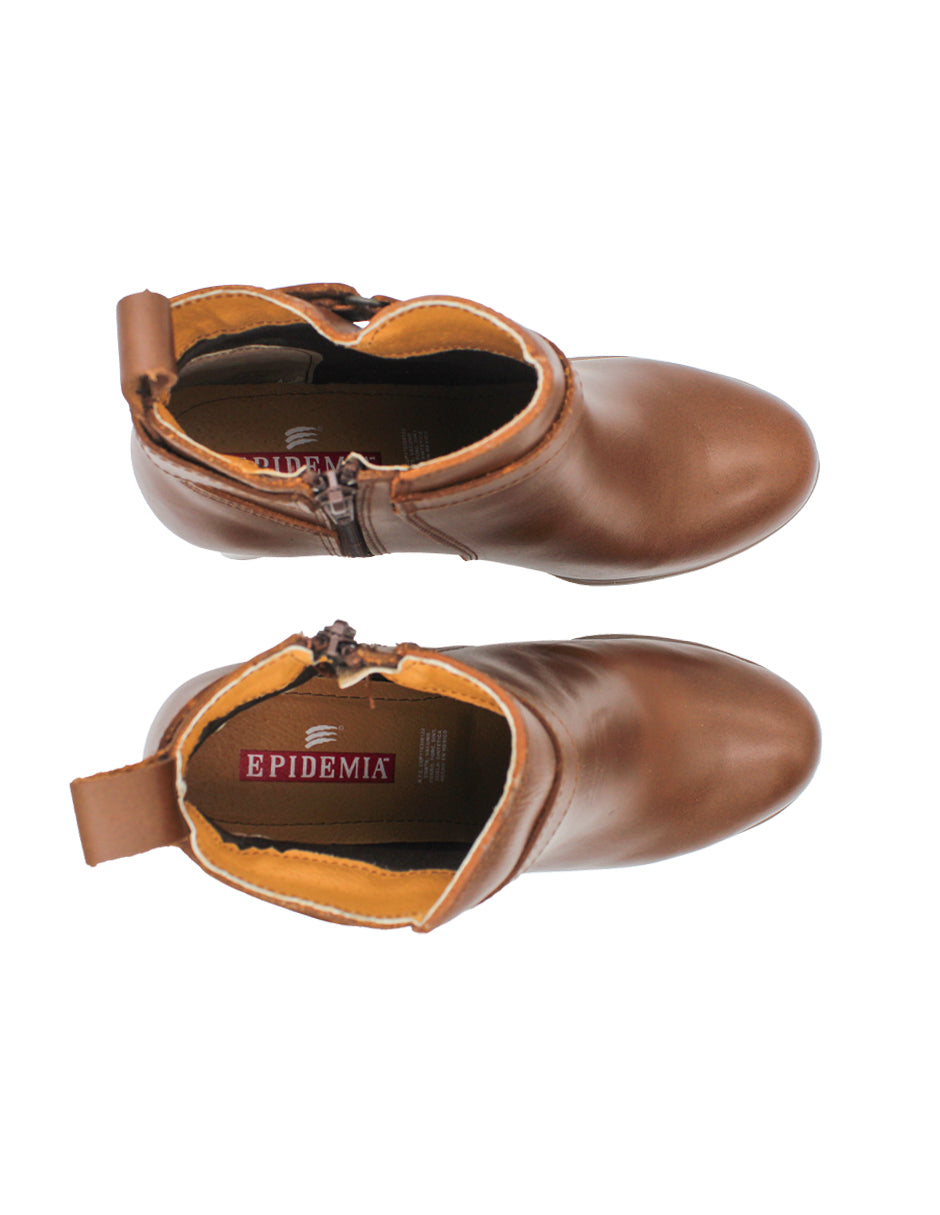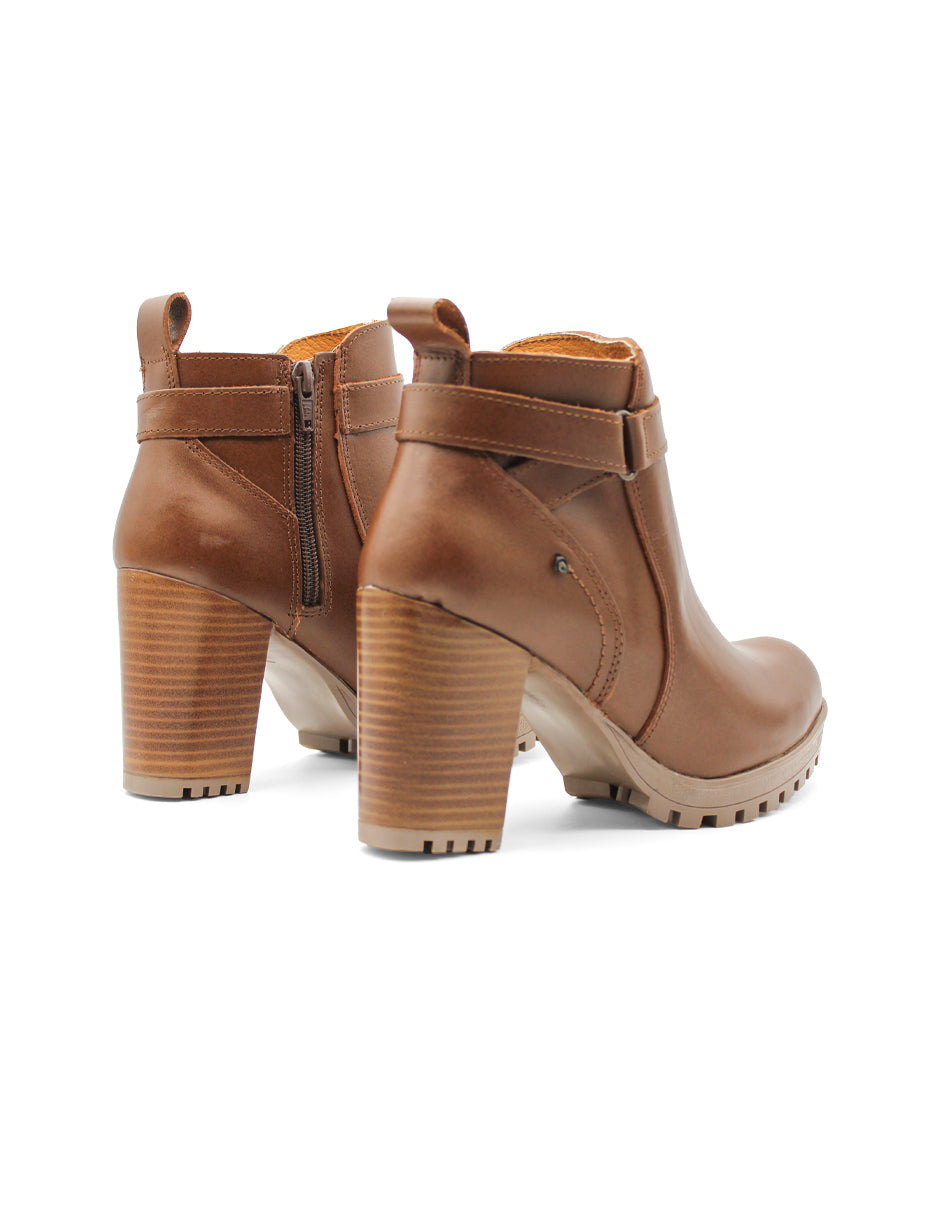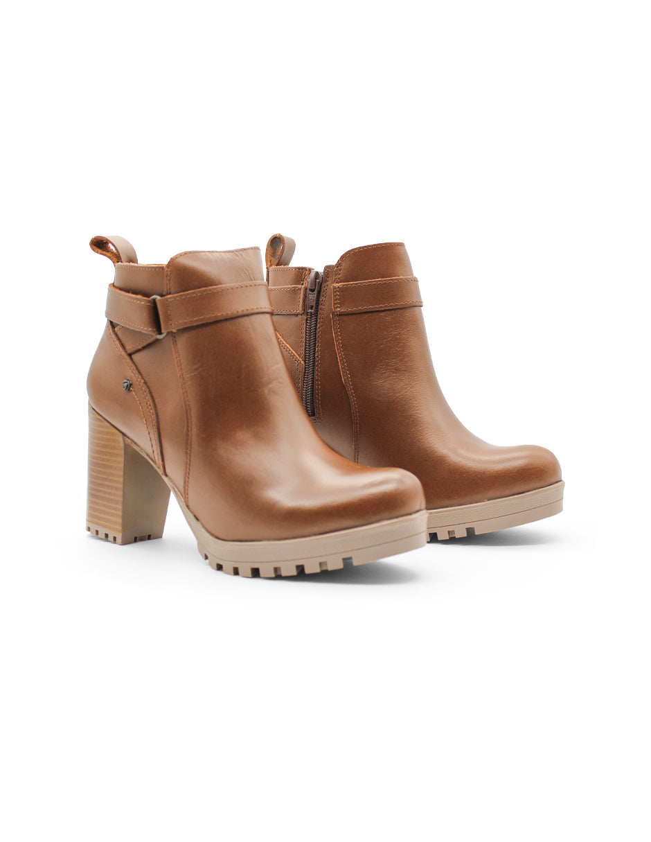 Botín con tacón color café exterior piel, ajuste con cierre, construcción nacional