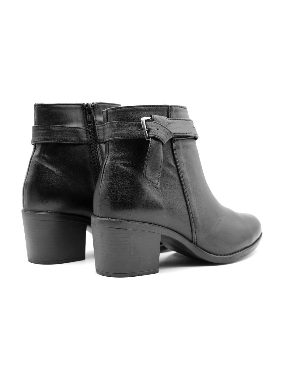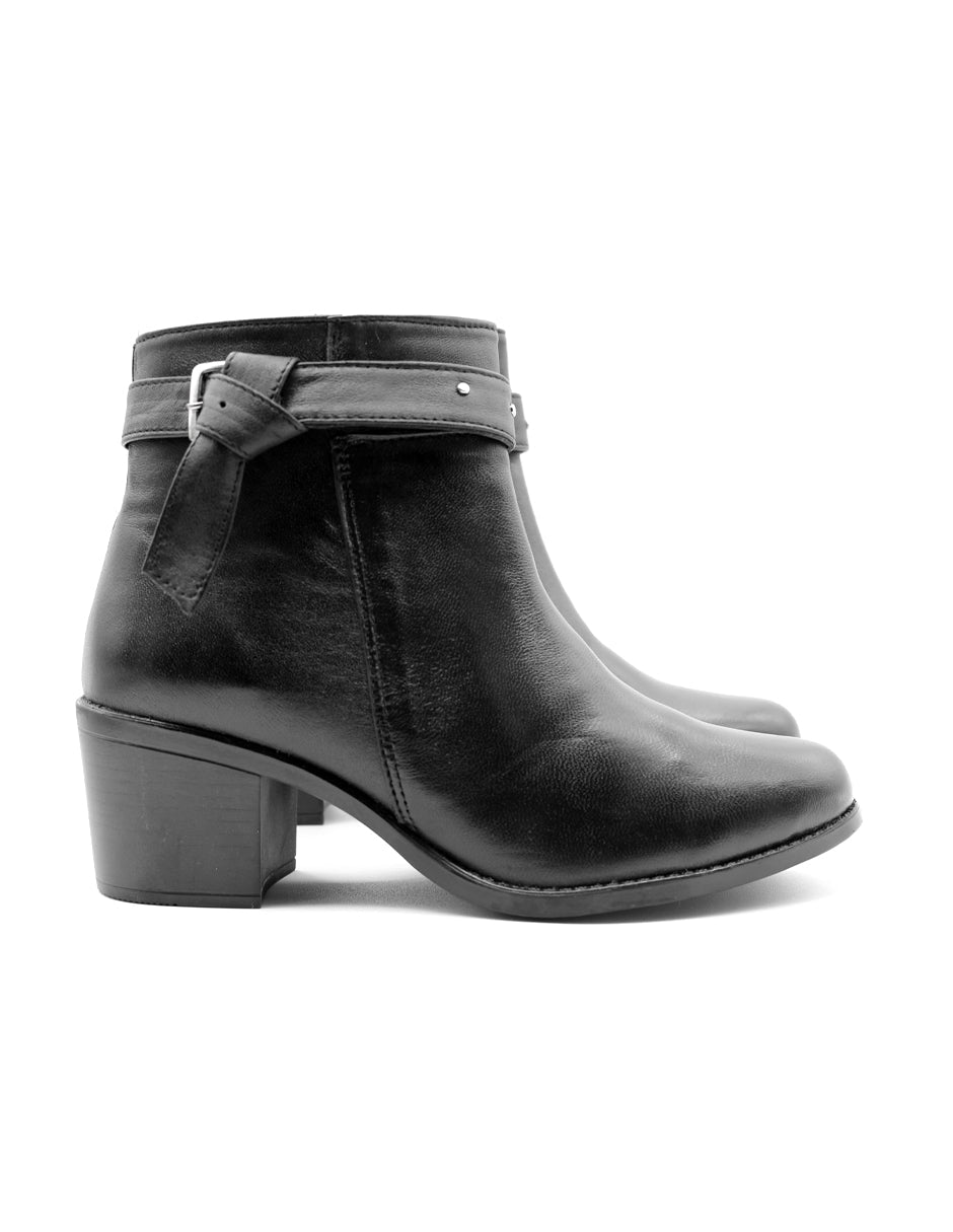 Botín con tacón color negro exterior piel, ajuste con cierre, construcción nacional