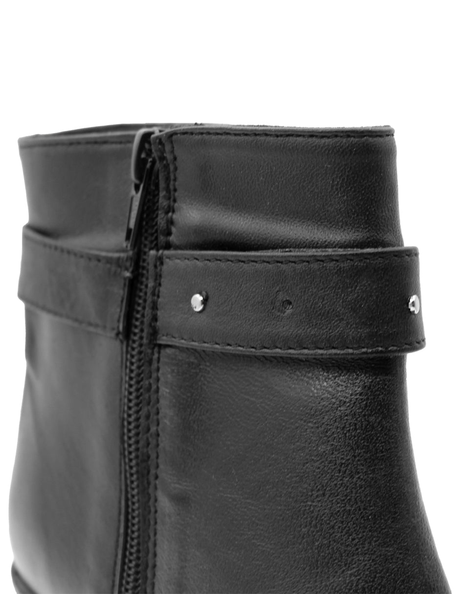 Botín con Tacón Exterior Piel Color Negro Para Mujer De RBCOLLECTION