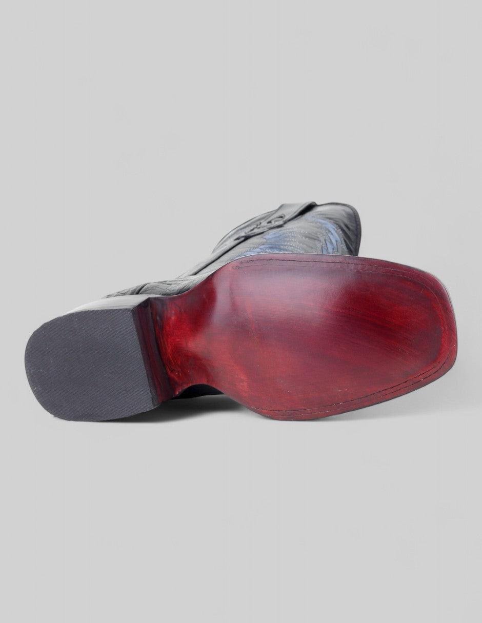 Las botas tipo western de RBCOLLECTION en piel color azul con grecas integran carácter y tradición en cada paso. Su silueta firme resalta en reuniones informales, salidas al aire libre o eventos con esencia vaquera. El diseño aporta presencia sin rigidez. ¡Adquiérelas en línea y renueva tu estilo con autenticidad contemporánea!