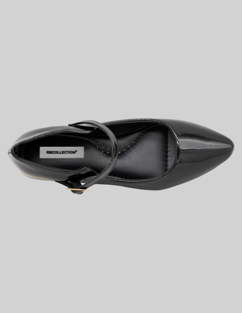 Las Mary Jane modelo Jone de RBCOLLECTION en charol negro destacan por su brillo elegante y silueta estilizada que aporta sofisticación inmediata. Con ajuste de hebilla, brindan seguridad y comodidad diaria, ideales para complementar trajes formales, faldas modernas o pantalones clásicos. ¡Haz tu pedido en línea y refuerza tu estilo con un diseño atemporal que transmite distinción segura!