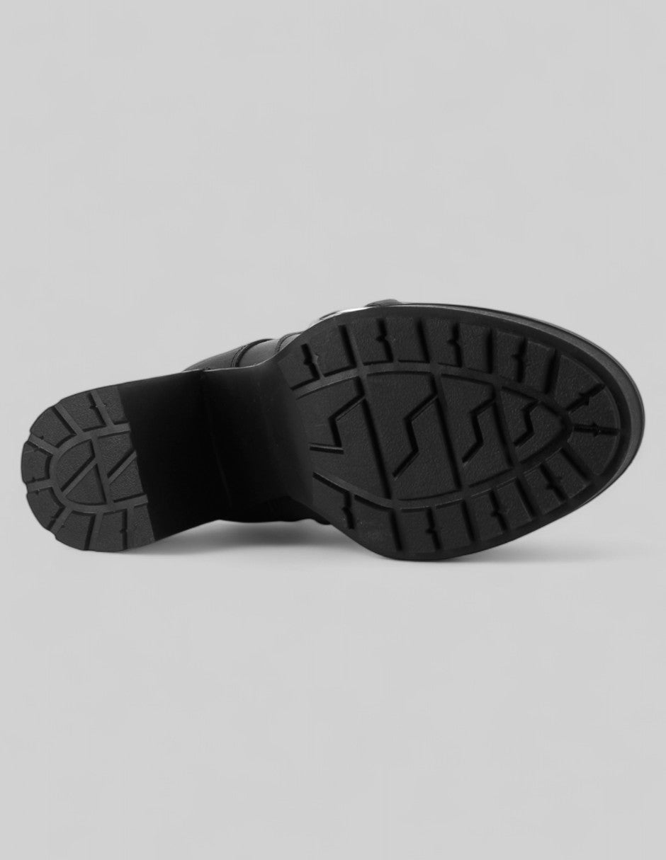 Los botines con tacón modelo Aurora de RBCOLLECTION en piel vegana color negro combinan presencia firme y diseño funcional. La hebilla decorativa resalta con discreción, mientras el ajuste con cierre facilita su uso diario. Llévalos al trabajo o en salidas casuales con estilo. ¡Consíguelos hoy y renueva tu paso con carácter!