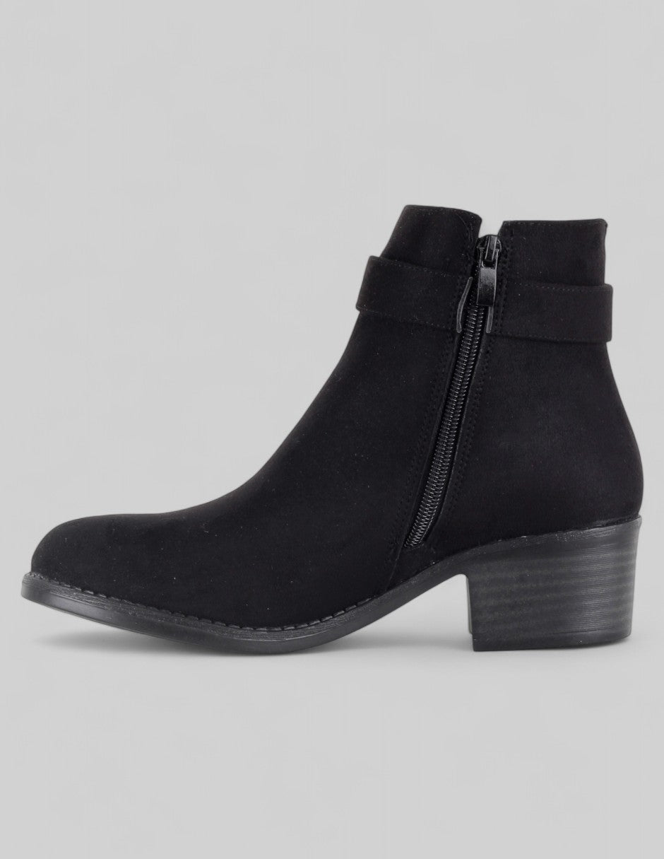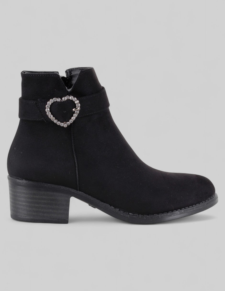 • Botín con tacón Aurora en Gamuza – Negro