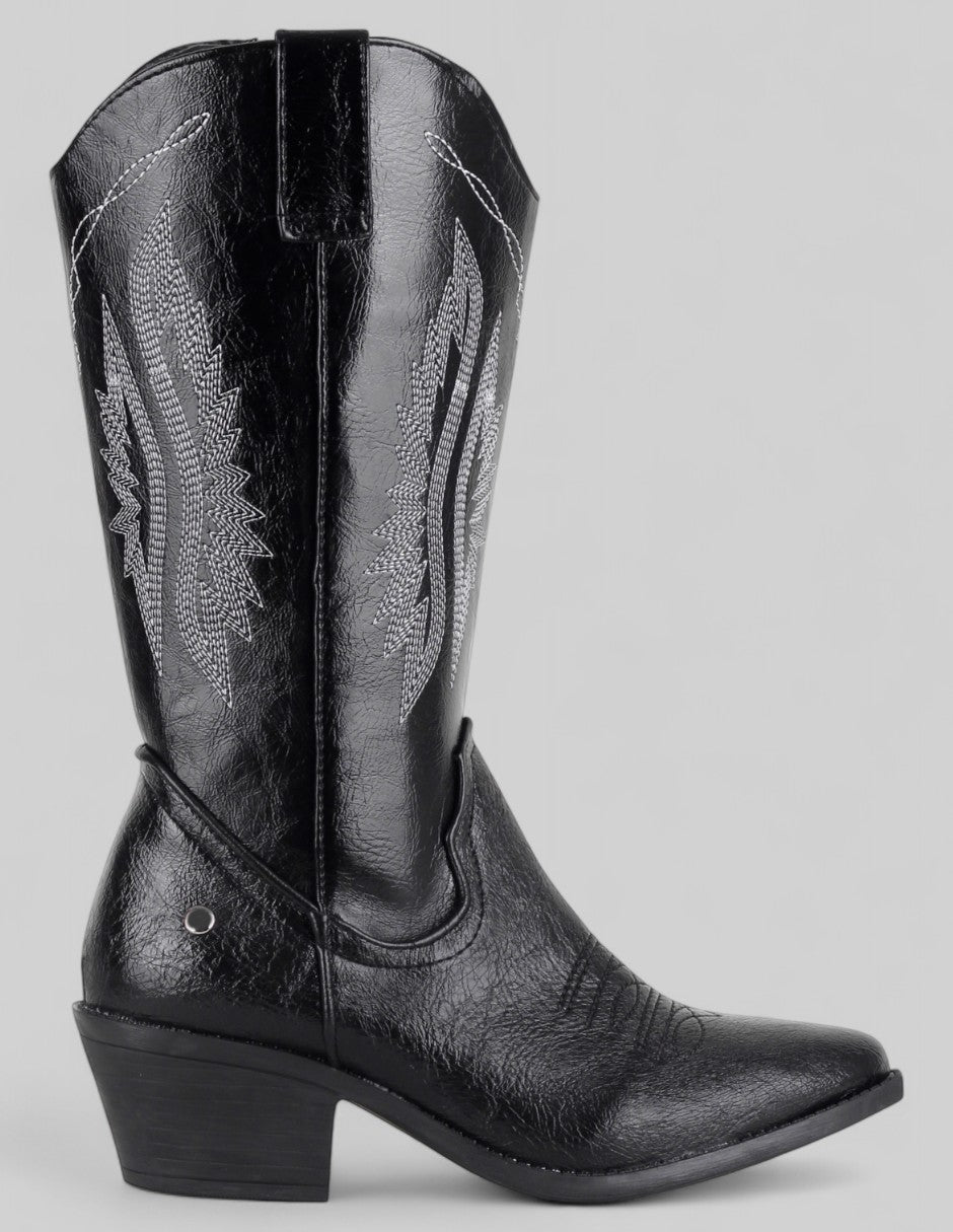 Botas tipo western West en Piel vegana – Negro