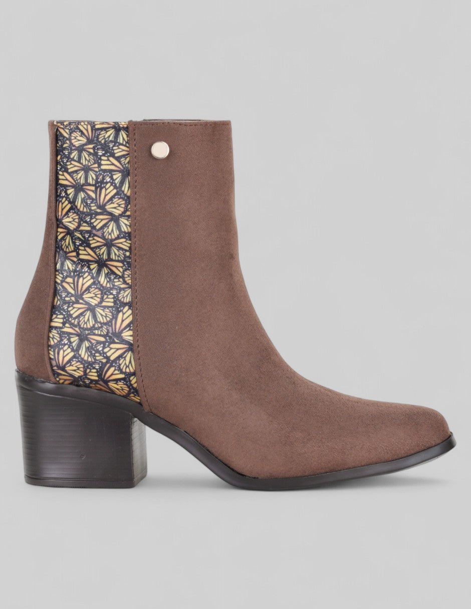 Los botines con tacón modelo Aurora de RBCOLLECTION en gamuza color café fusionan textura suave y un contraste animal print que resalta al caminar. El ajuste con cierre ofrece practicidad para días activos. Perfectos para llevar con jeans o faldas midi. ¡Haz clic y añade una pieza audaz a tu armario!