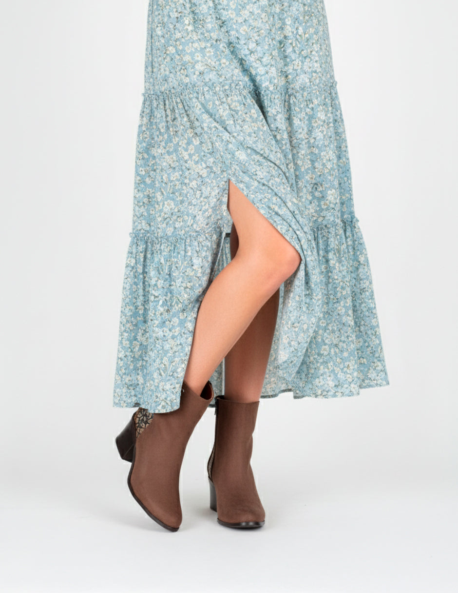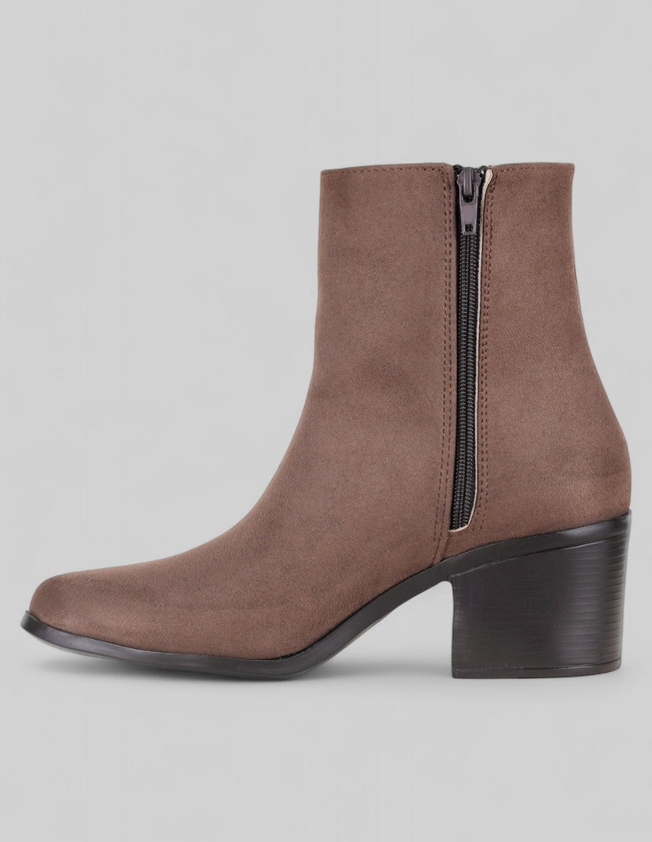 Botín con tacón Exterior Gamuza Color Café Para Mujer De RBCOLLECTION