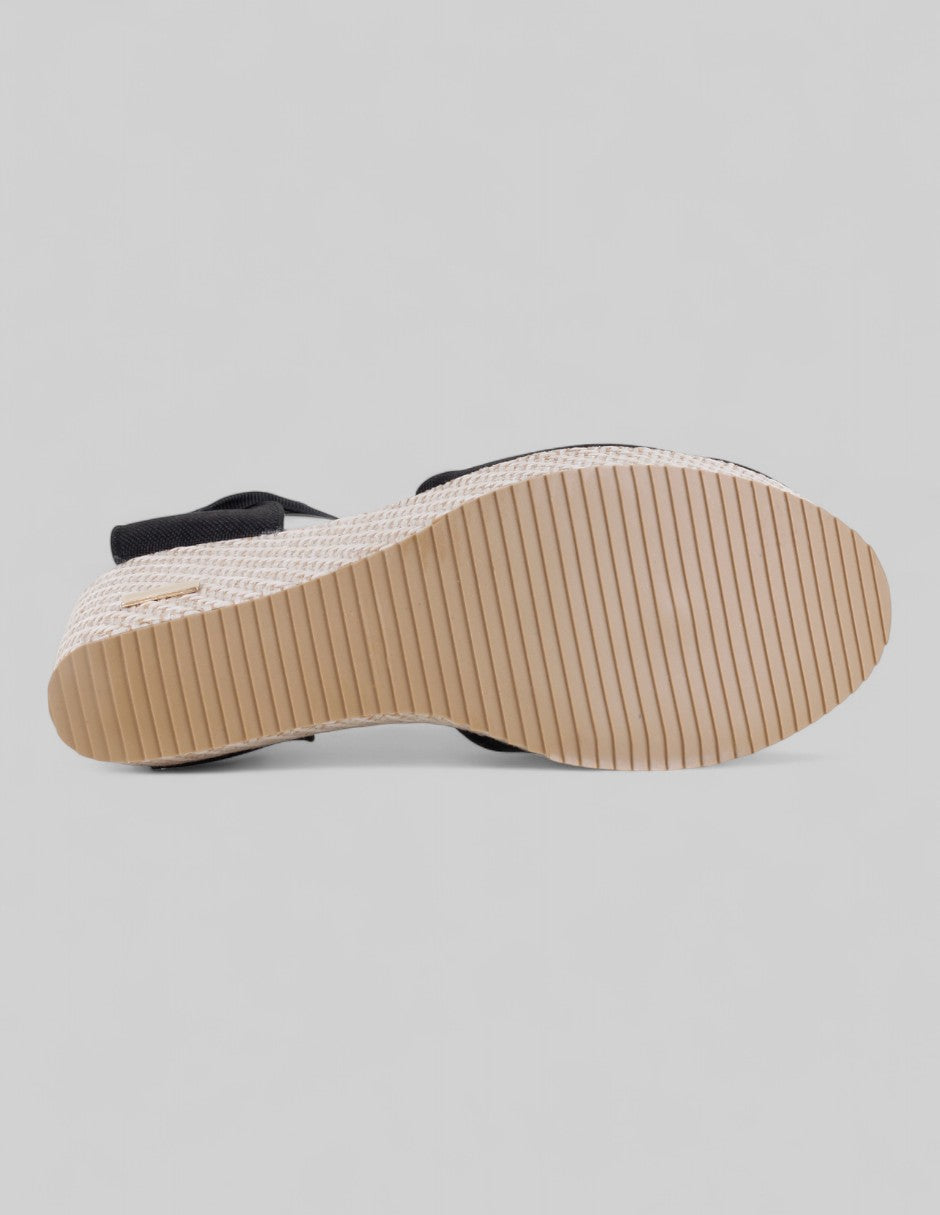 El tacón puente modelo Naia de RBCOLLECTION en textil color negro fusiona delicadeza y altura con su base de yute y cintas para amarre al tobillo. Ideal para caminar por terrazas, reuniones en exterior o tardes relajadas. ¡Elige tu talla y recíbelo en casa con solo un clic!